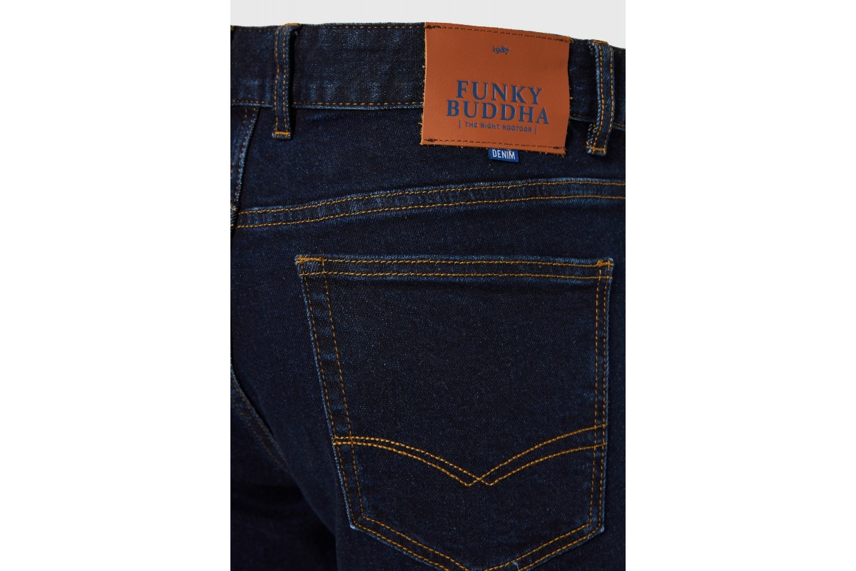 Αναβάθμισε την καθημερινή σου γκαρνταρόμπα με το Funky Buddha ανδρικό τζιν παντελόνι σε μπλε σκούρο χρώμα.