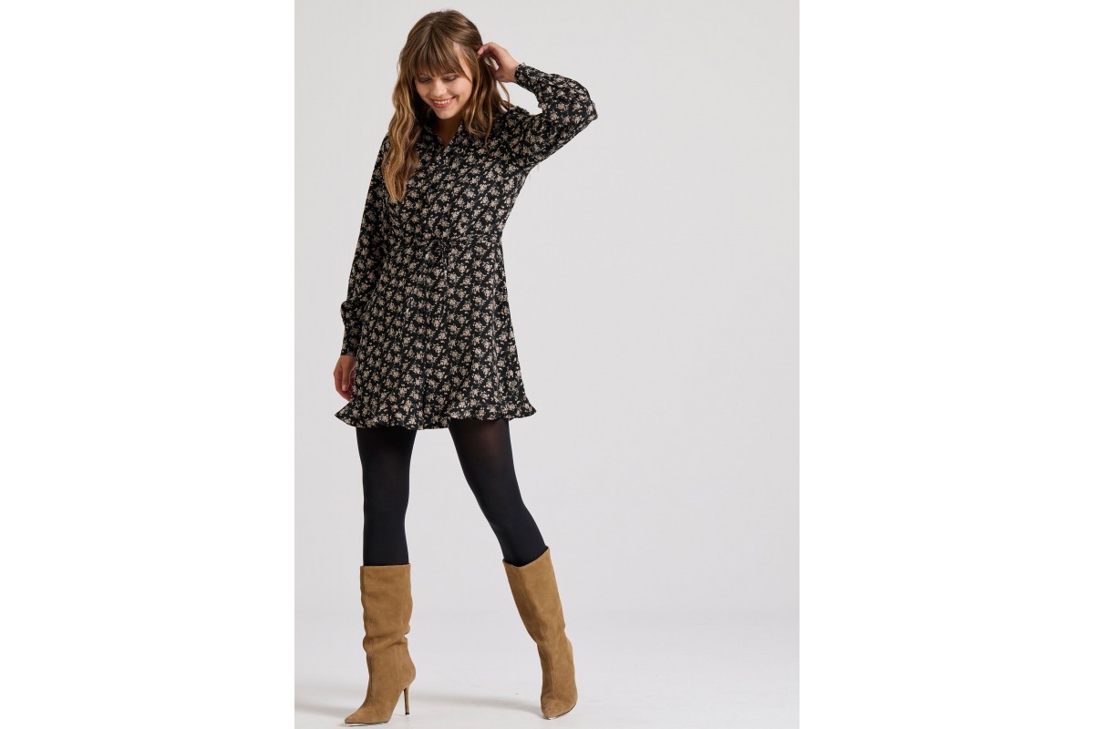 Ο κλασικός γιακάς και η πατιλέτα με κουμπιά δίνει σε αυτό το φόρεμα τον κομψό shirtdress χαρακτήρα που ταιριάζει σε πολλές περιστάσεις.