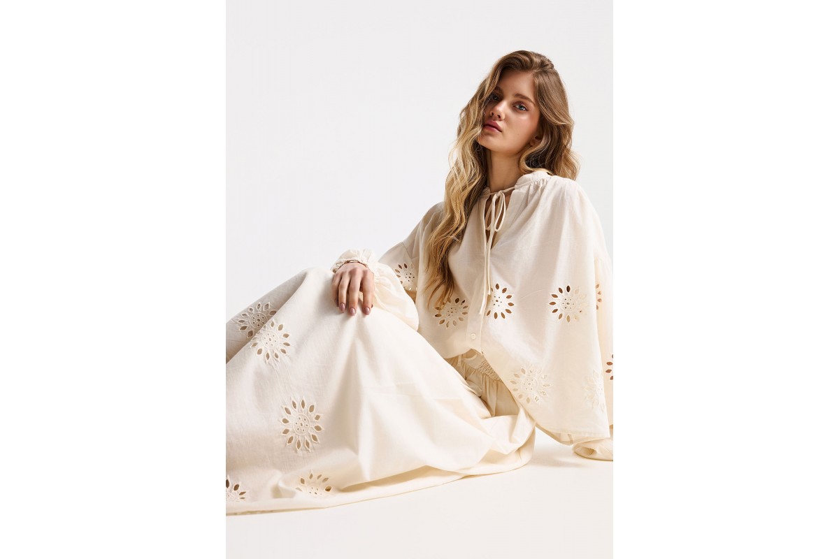 Το 100% βαμβακερό ύφασμα εξασφαλίζει δροσερή και ανάλαφρη αίσθηση, ενώ το διακριτικό διάτρητο κεντημένο μοτίβο προσθέτει μια ρομαντική και εκλεπτυσμένη πινελιά στο look σου.