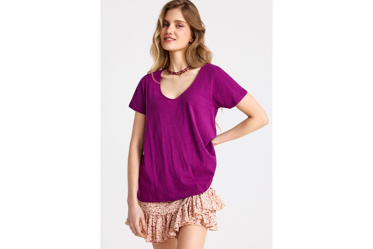 Funky Buddha The Basics Collection V-Neck T-Shirt Γυναικείο (FBL013-100-04-GRAPE-JUICE)