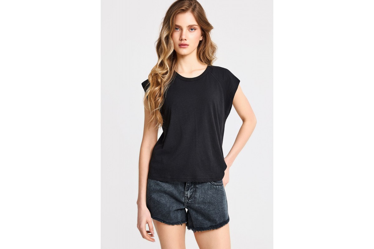 NEW IN! Funky Buddha Γυναικεία Κοντομάνικη Μπλούζα Μαύρη