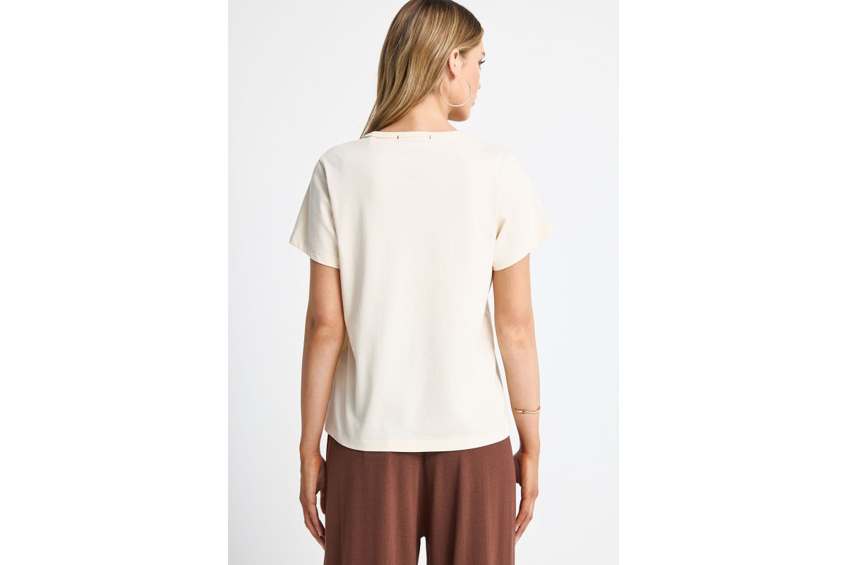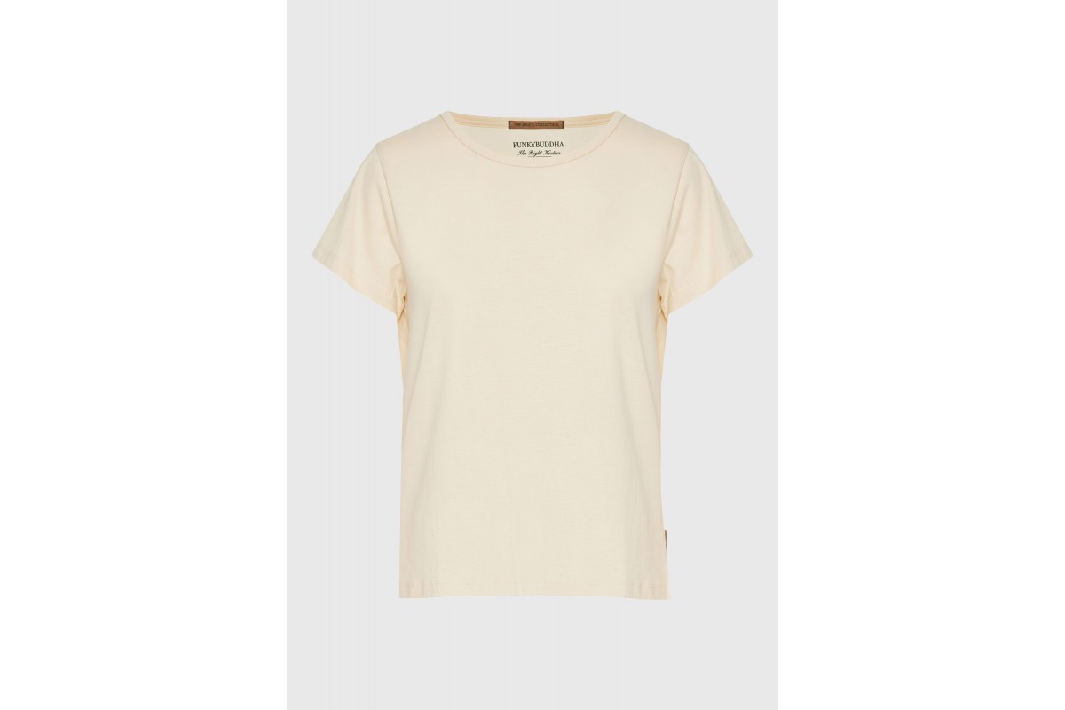Ανακάλυψε την άνεση και την απλότητα που χρειάζεται η καθημερινή σου γκαρνταρόμπα με το Funky Buddha The Basics Collection γυναικείο κοντομάνικο t-shirt σε εκρού απόχρωση.