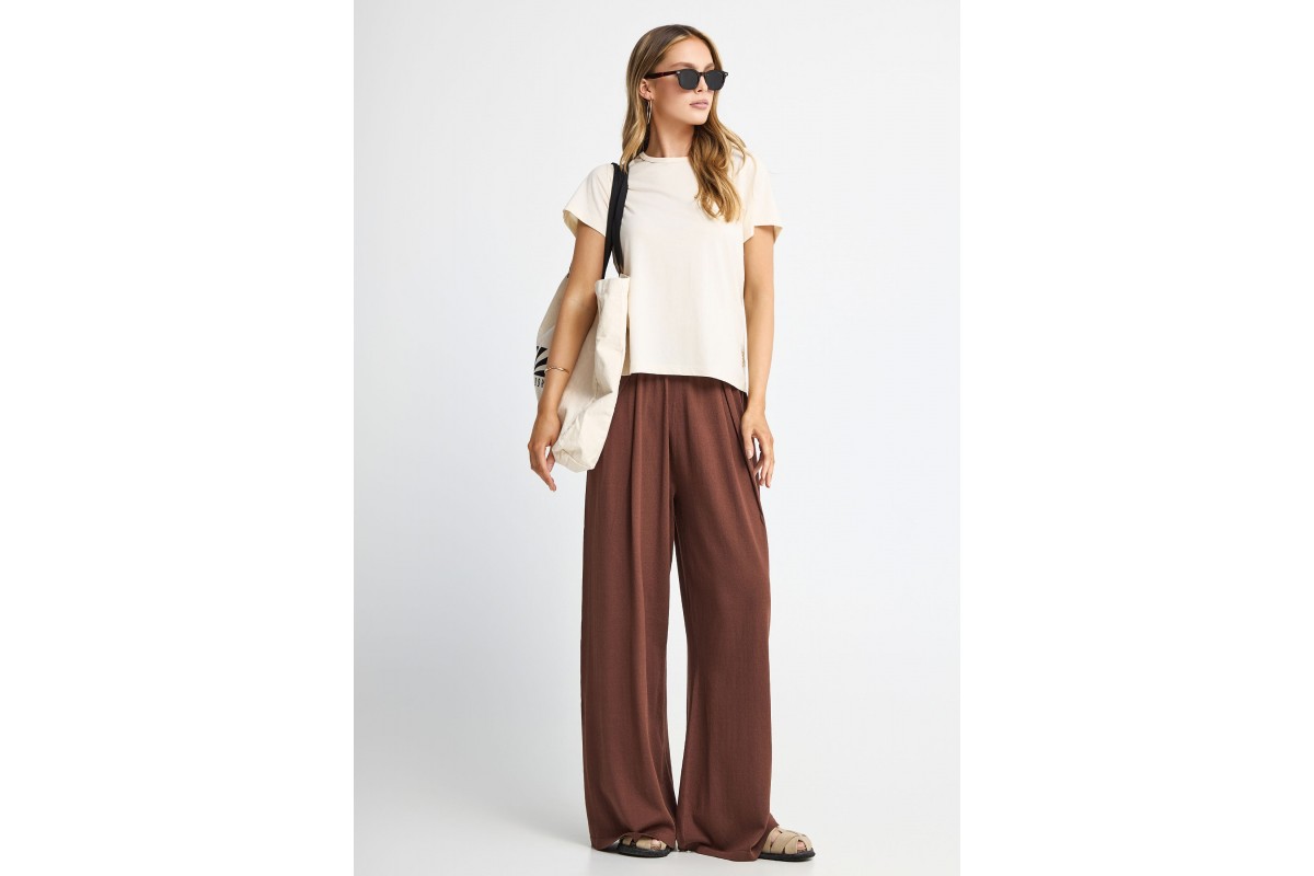Ο στρογγυλός λαιμός προσθέτει διαχρονικό χαρακτήρα στο σχέδιο, ενώ τα κοντά μανίκια ενισχύουν τον πρακτικό και casual χαρακτήρα του ρούχου.