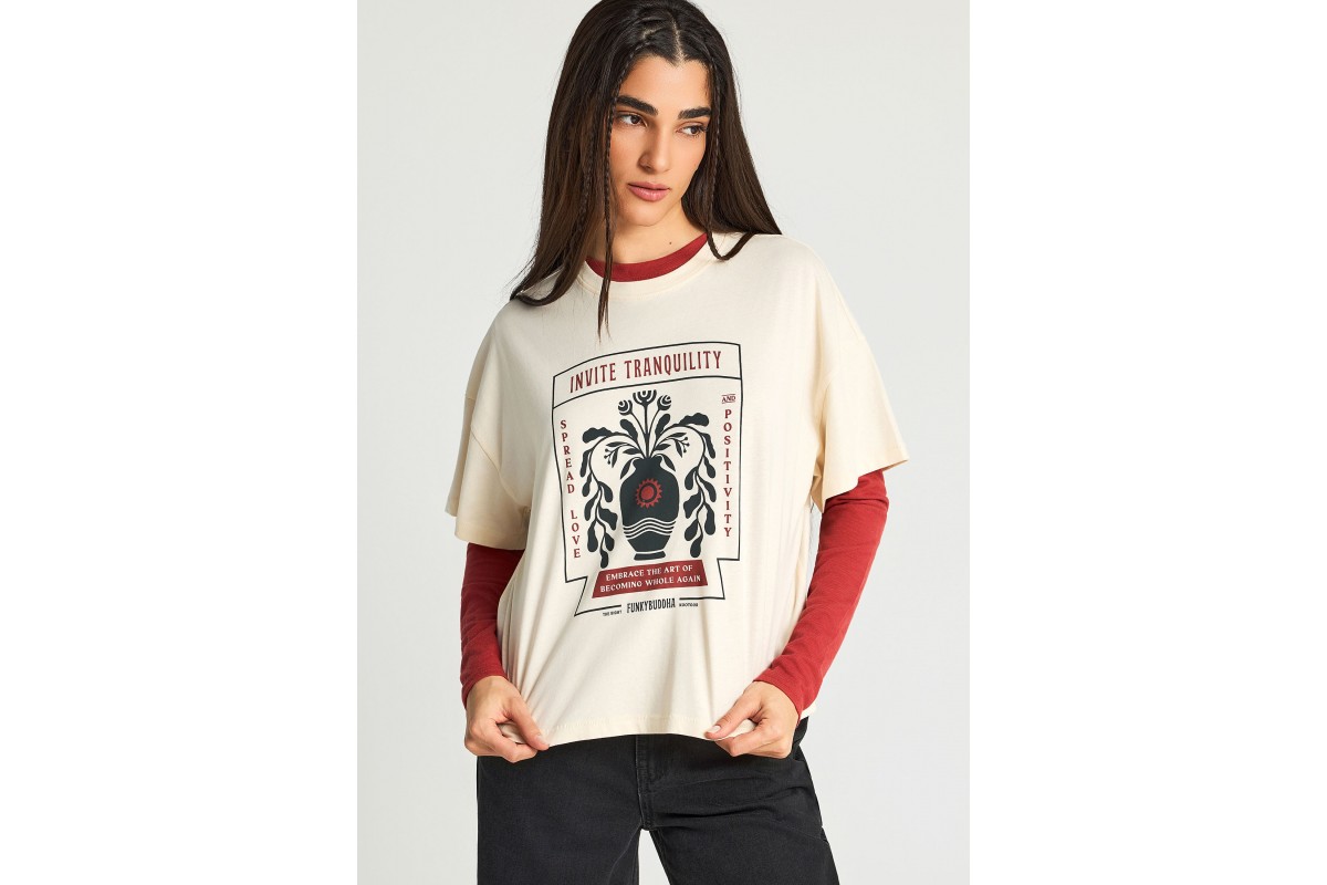 NEW IN! Funky Buddha Graphic Print Γυναικείο Κοντομάνικο T-Shirt Μπεζ, Διάφορα Χρώματα