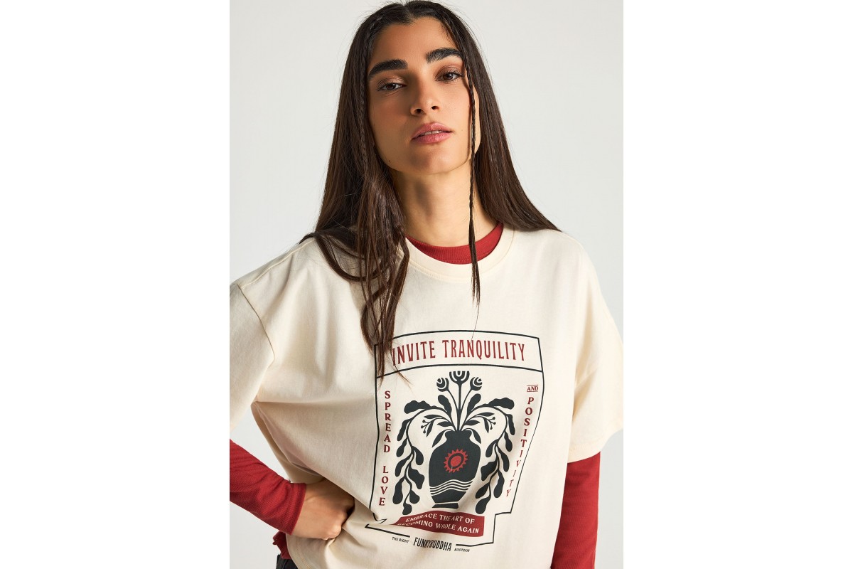 Ανάδειξε το casual στυλ σου με το Funky Buddha Graphic Print γυναικείο κοντομάνικο T-Shirt και απόλαυσε άνεση και μοντέρνα αισθητική σε κάθε σου εμφάνιση.