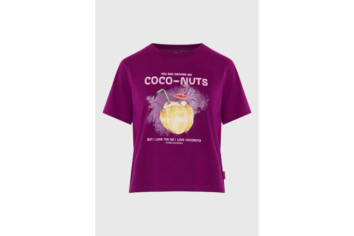 Funky Buddha Γυναικεία Μπλούζα Κοντό Μανίκι Και Τύπωμα (FBL013-155-04-GRAPE-JUICE)