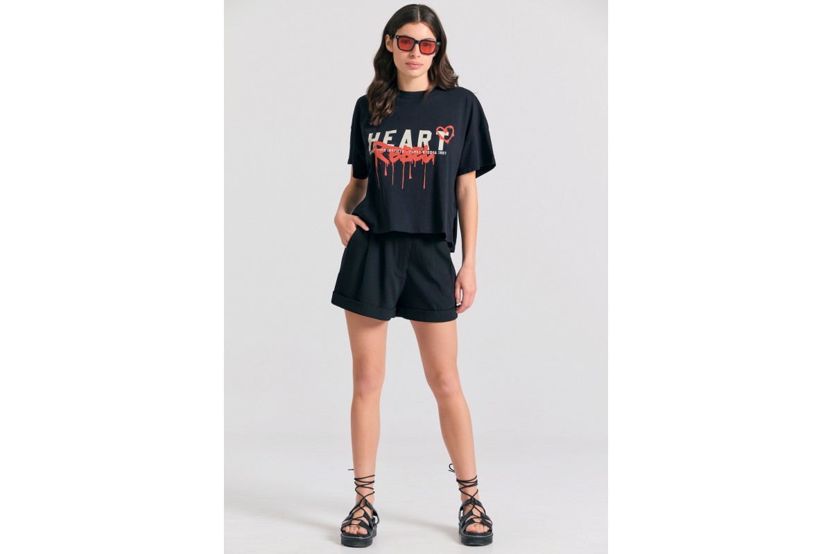 Μη Διαθέσιμο Funky Buddha Γυναικεία Κοντομάνικη Μπλούζα Μαύρη