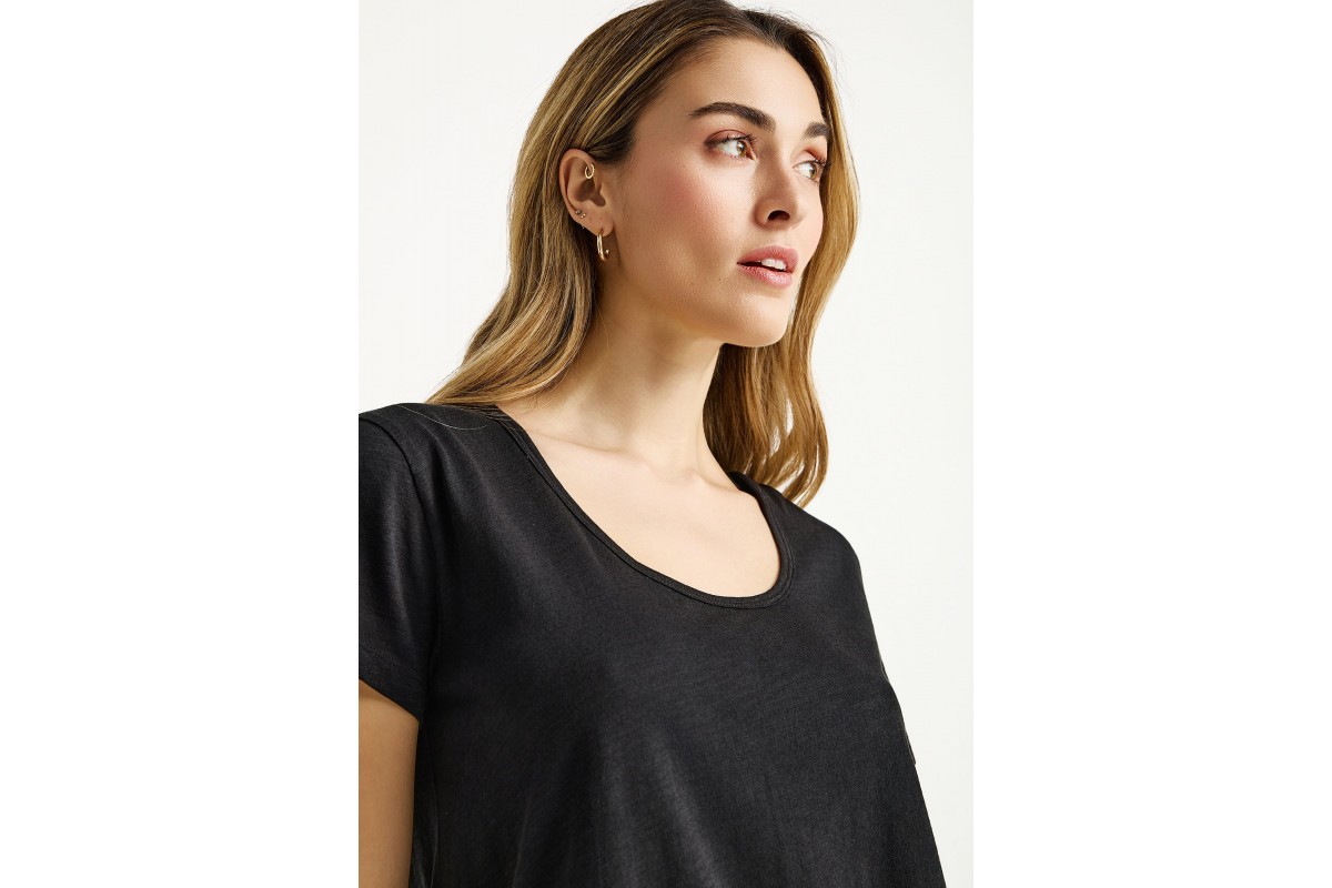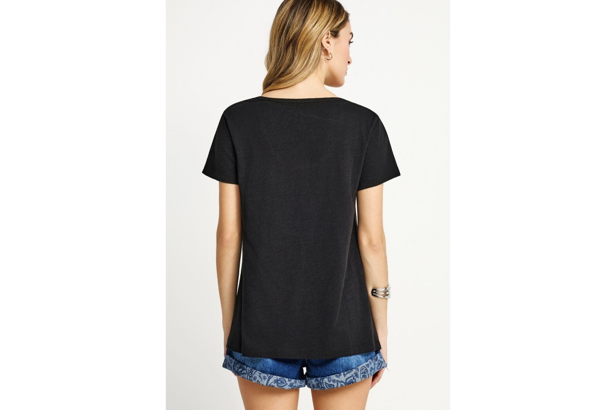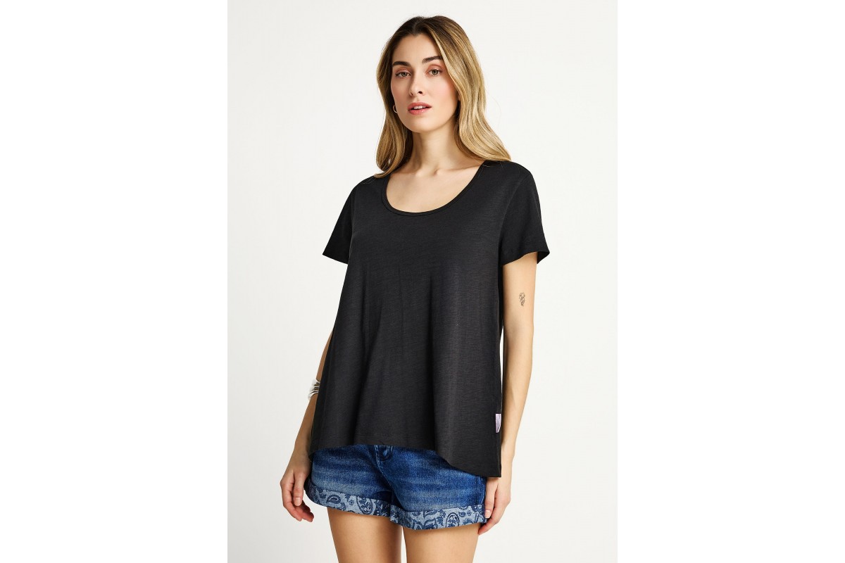 Αναβάθμισε το καθημερινό σου στυλ με το Funky Buddha The Basics Collection γυναικείο κοντομάνικο T-Shirt σε μαύρο χρώμα, ένα essential κομμάτι που συνδυάζει άνεση, ποιότητα και minimal αισθητική.