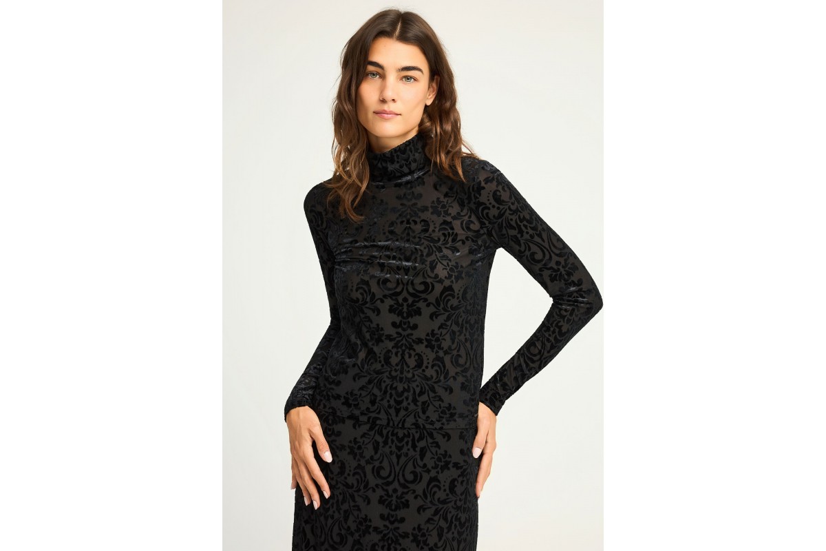 Funky Buddha Velvet Μπλούζα Με Ψηλό Λαιμό Γυναικεία (FBL012-113-07-BLACK)