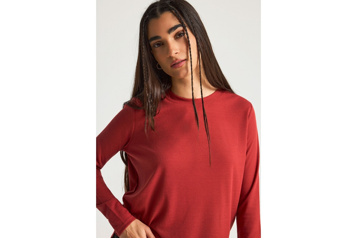 Αναβάθμισε τα καθημερινά σου outfits με τη Funky Buddha γυναικεία μακρυμάνικη μπλούζα σε κεραμιδί χρώμα, ένα διαχρονικό κομμάτι που συνδυάζει απλότητα, άνεση και κομψότητα.