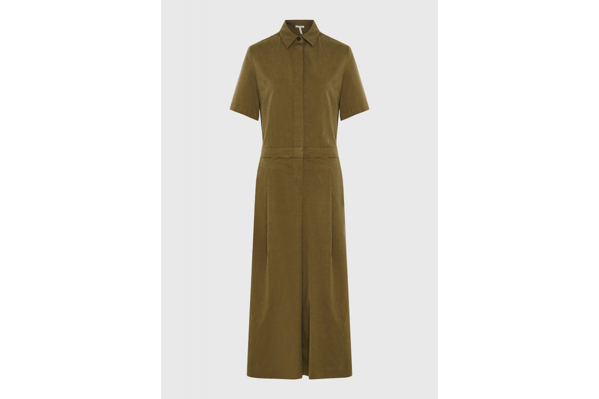 Ο κλασικός γιακάς προσθέτει διαχρονική κομψότητα στο σχέδιο, ενώ τα κοντά μανίκια ενισχύουν την άνεση και τον καθημερινό χαρακτήρα της φόρμας.