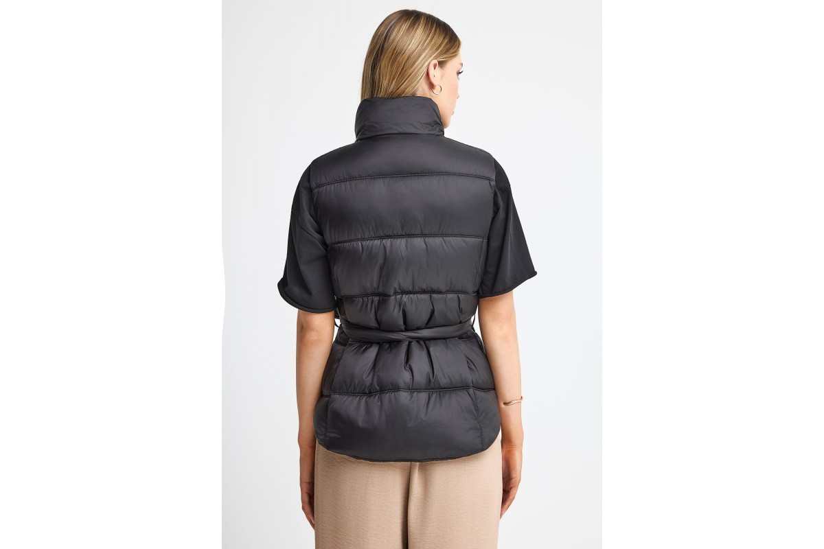 Ο αμάνικος σχεδιασμός επιτρέπει ελευθερία κινήσεων και κάνει το μπουφάν ιδανικό για μεταβατικές εποχές.