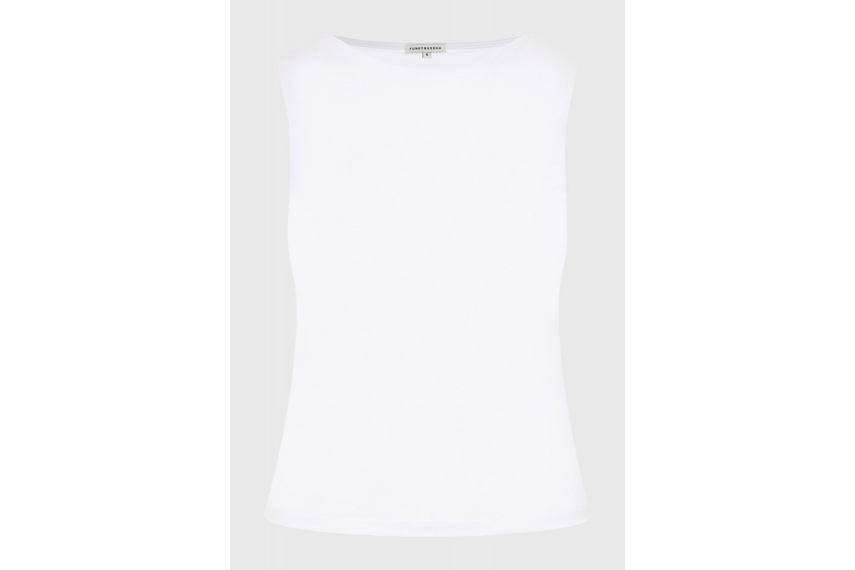 NEW IN! Funky Buddha Γυναικείο Αμάνικο Τοπ Λευκό