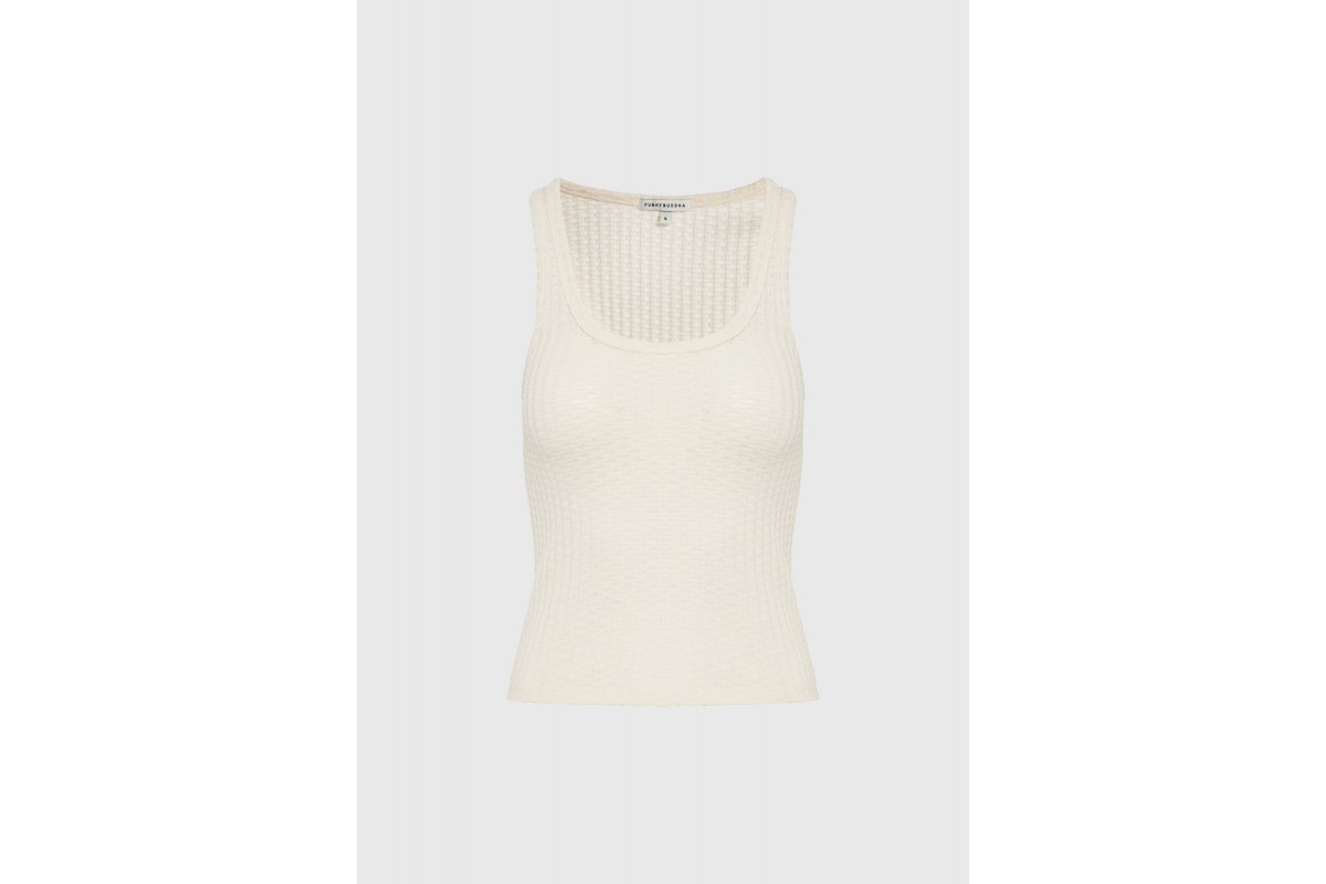 NEW IN! Funky Buddha Γυναικεία Αμάνικη Μπλούζα Εκρού