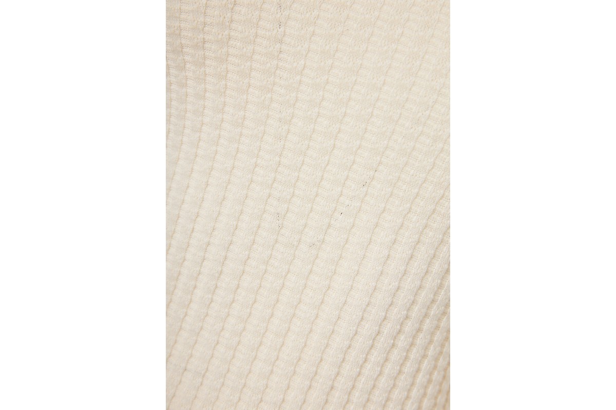 Το rib ύφασμα χαρίζει απαλή υφή και ελαστικότητα, αναδεικνύοντας τη σιλουέτα με φυσικό τρόπο, ενώ η χαμηλή λαιμόκοψη προσθέτει μια θηλυκή πινελιά στο σύνολο.