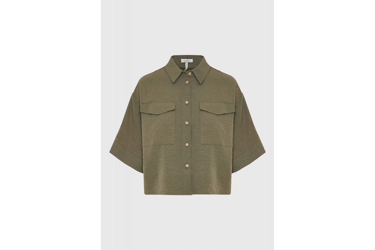 Funky Buddha Γυναικείο Κοντομάνικο Πουκάμισο Χακί
