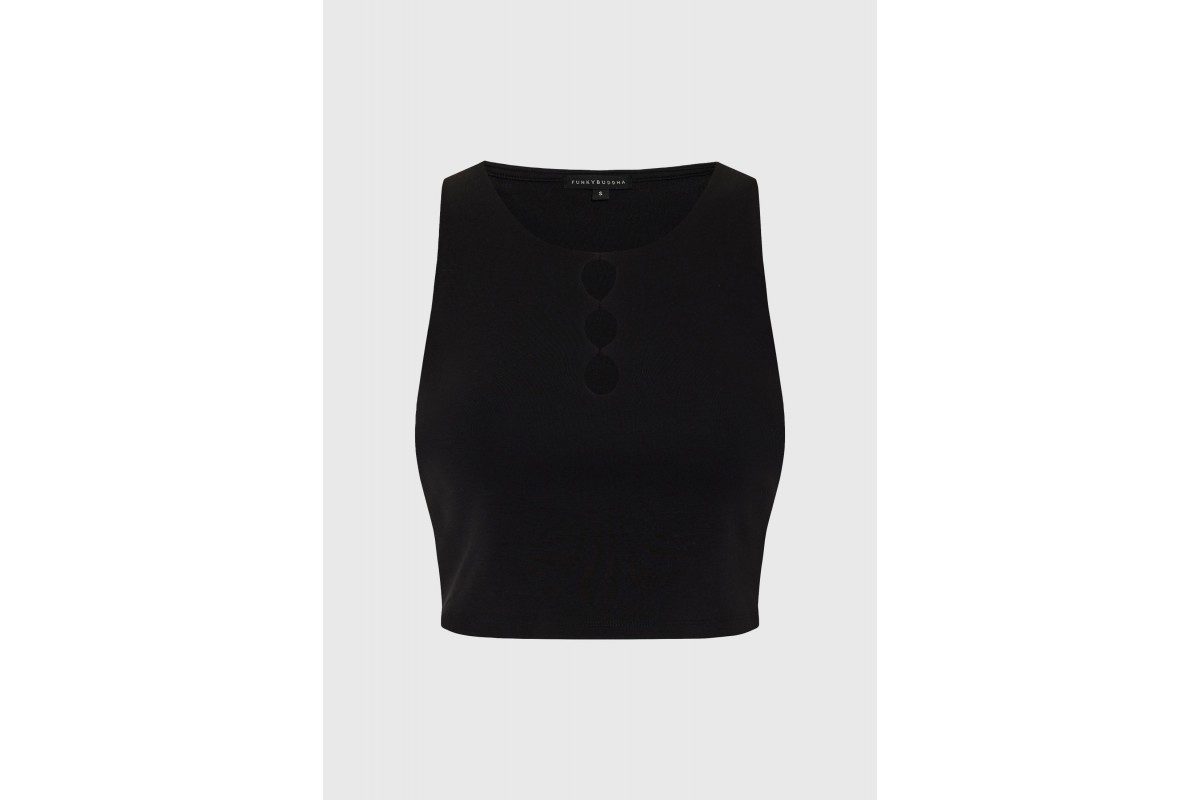 NEW IN! Funky Buddha Γυναικείο Αμάνικο Crop Top Μαύρο
