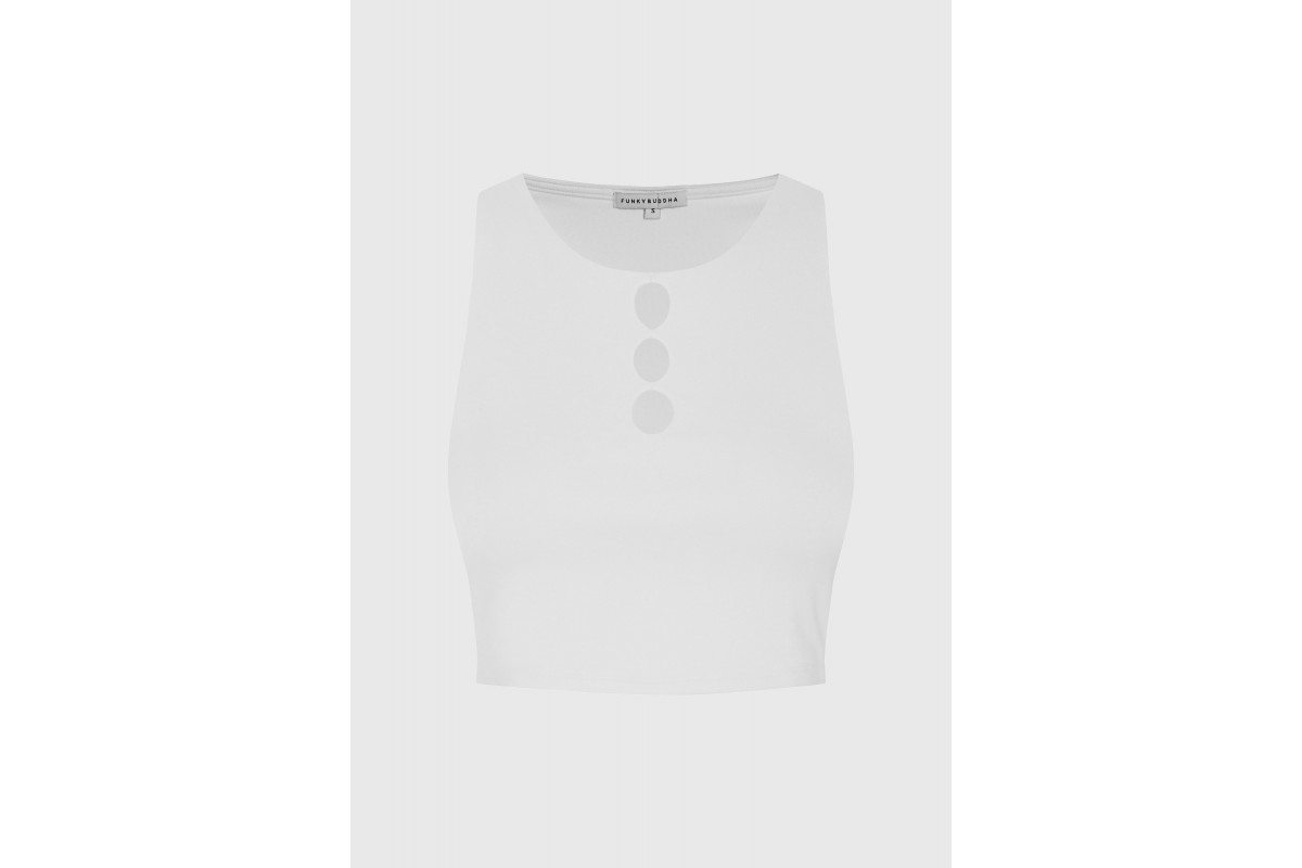 NEW IN! Funky Buddha Γυναικείο Αμάνικο Crop Top Λευκό