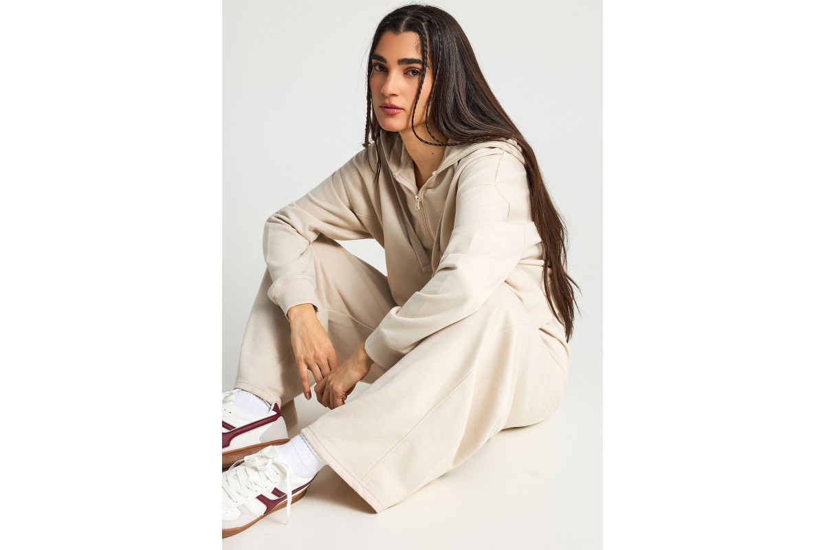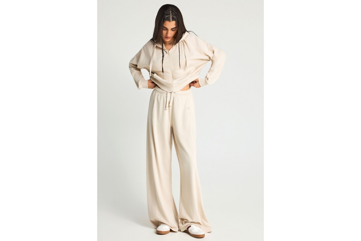 Το μονόχρωμο εκρού χρώμα προσδίδει διαχρονικό χαρακτήρα και minimal αισθητική στο παντελόνι, ενώ οι μπροστινές τσέπες προσθέτουν πρακτικότητα, επιτρέποντάς σου να έχεις μαζί σου μικροαντικείμενα της καθημερινότητας.