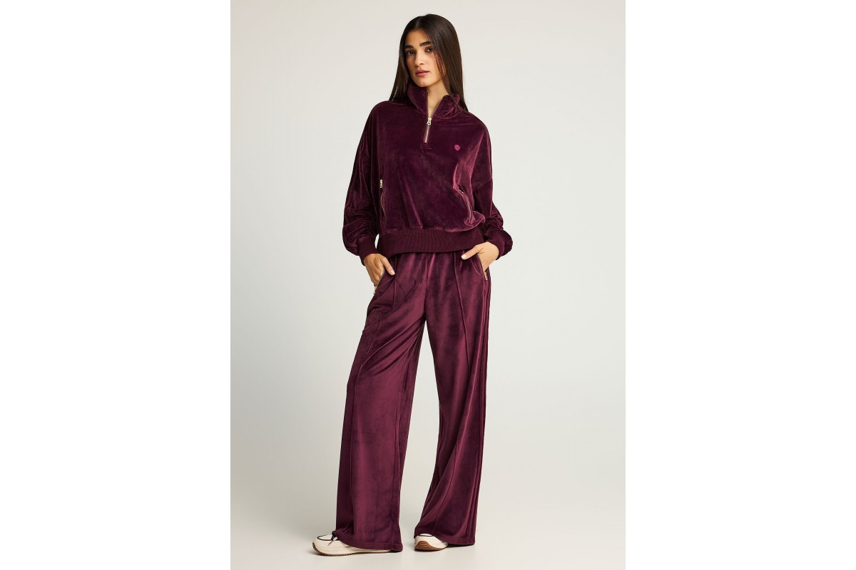 Αναβάθμισε το καθημερινό σου στυλ με τη Funky Buddha Velvet γυναικεία μακρυμάνικη μπλούζα με φερμουάρ σε μπορντό χρώμα, ένα κομμάτι που συνδυάζει πολυτέλεια, άνεση και athleisure αισθητική.