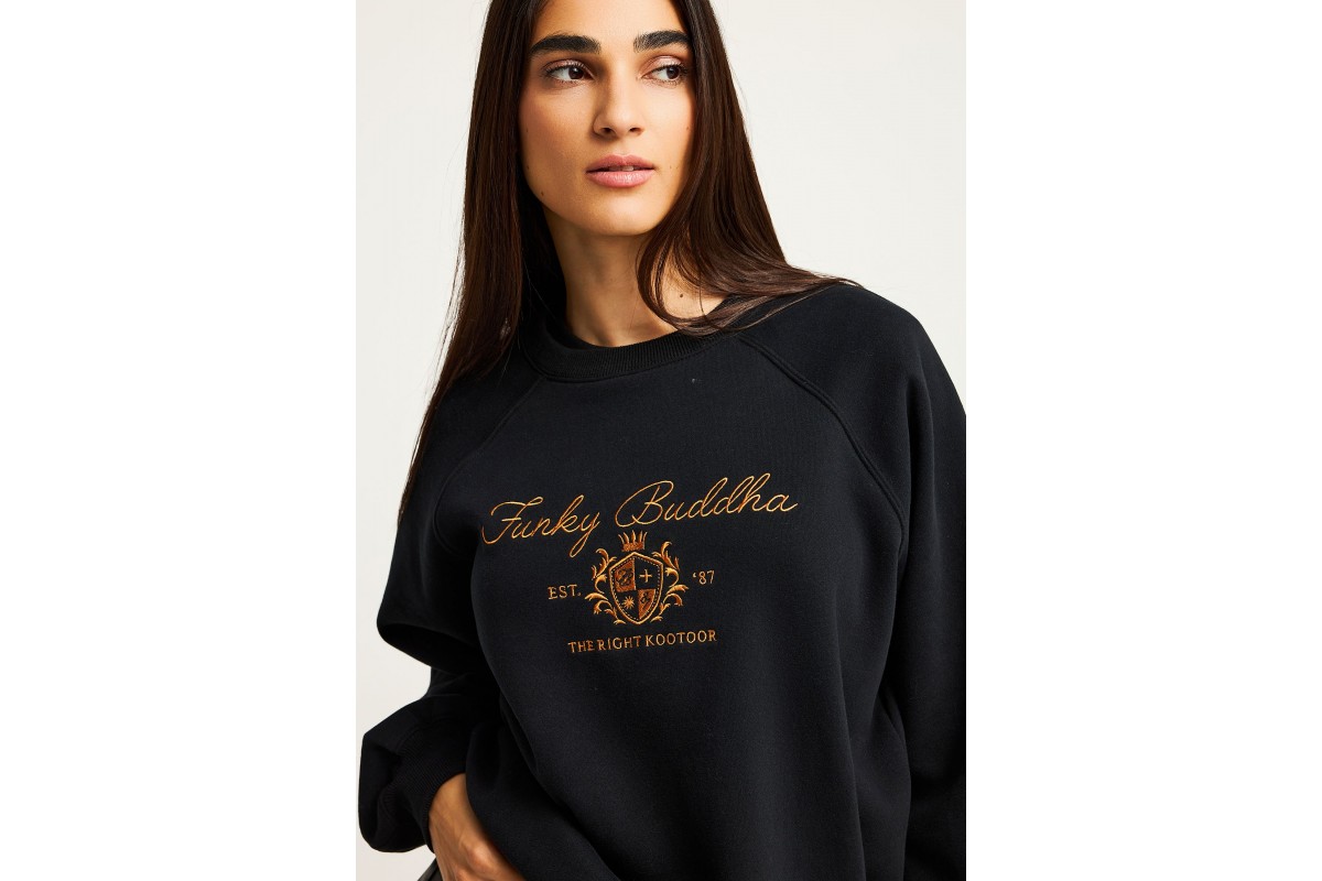 Αναβάθμισε το καθημερινό σου στυλ με τη Funky Buddha Embroidered Design γυναικεία μακρυμάνικη μπλούζα με λαιμόκοψη σε μαύρο χρώμα, ένα κομμάτι που συνδυάζει άψογα την άνεση, την ποιότητα και το σύγχρονο streetwear look.