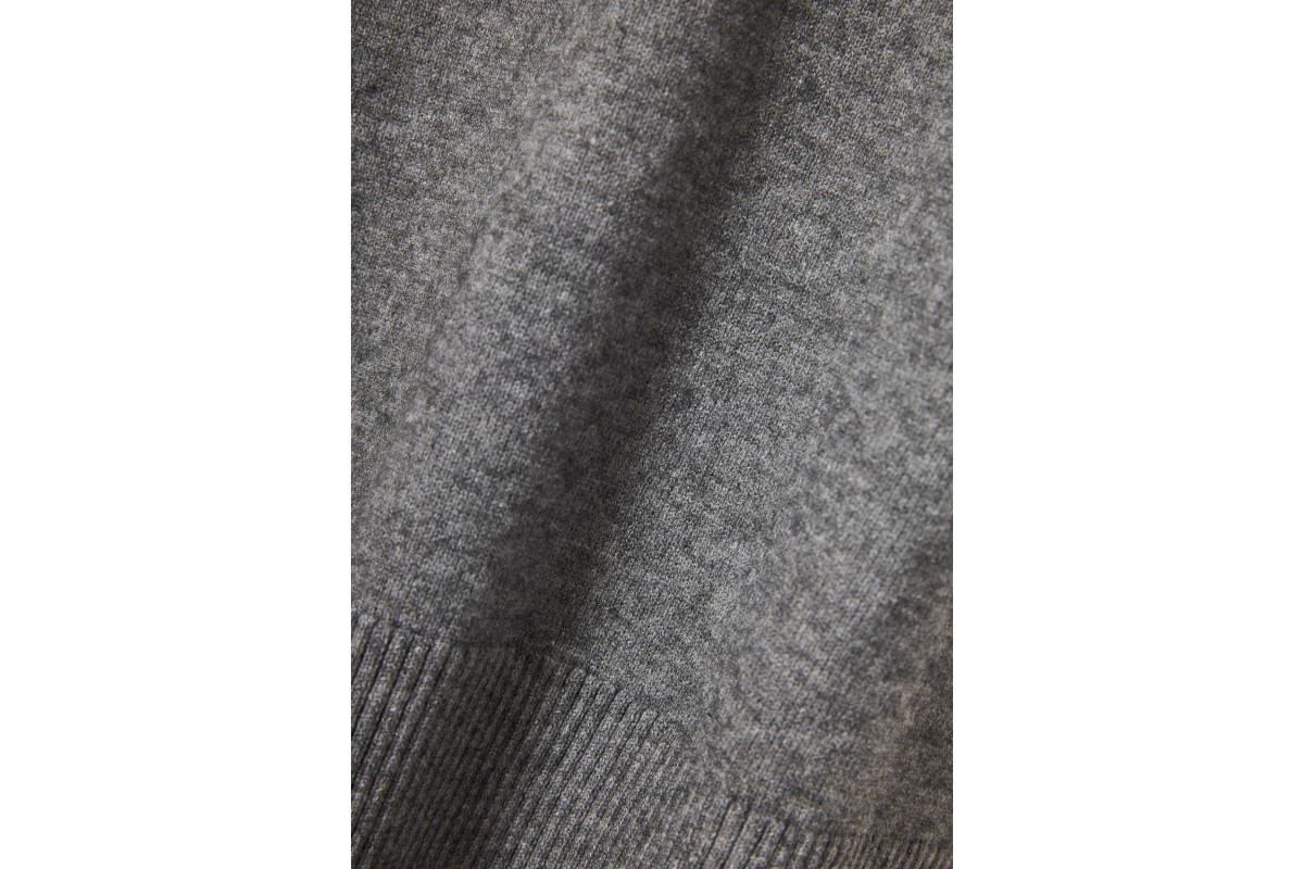 Η στρογγυλή λαιμόκοψη και οι rib μανσέτες προσθέτουν διακριτικές λεπτομέρειες που ολοκληρώνουν το minimal αλλά κομψό στυλ του φορέματος.