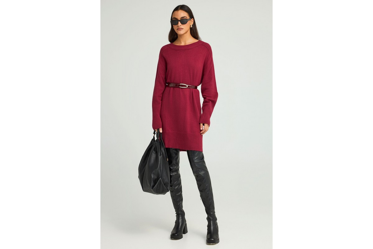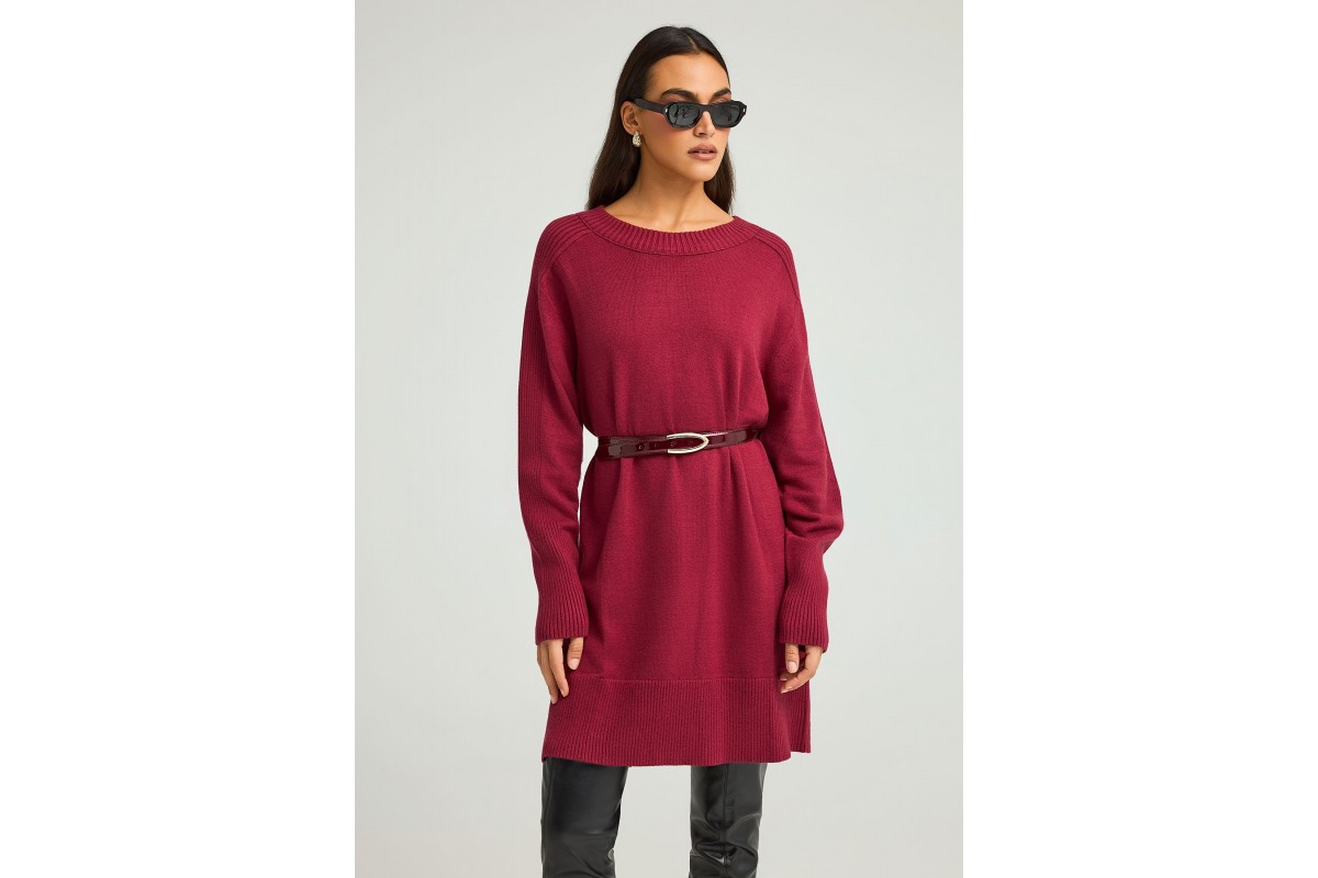 Funky Buddha Γυναικείο Πλεκτό Φόρεμα (FBL012-104-13-WINE-RED)