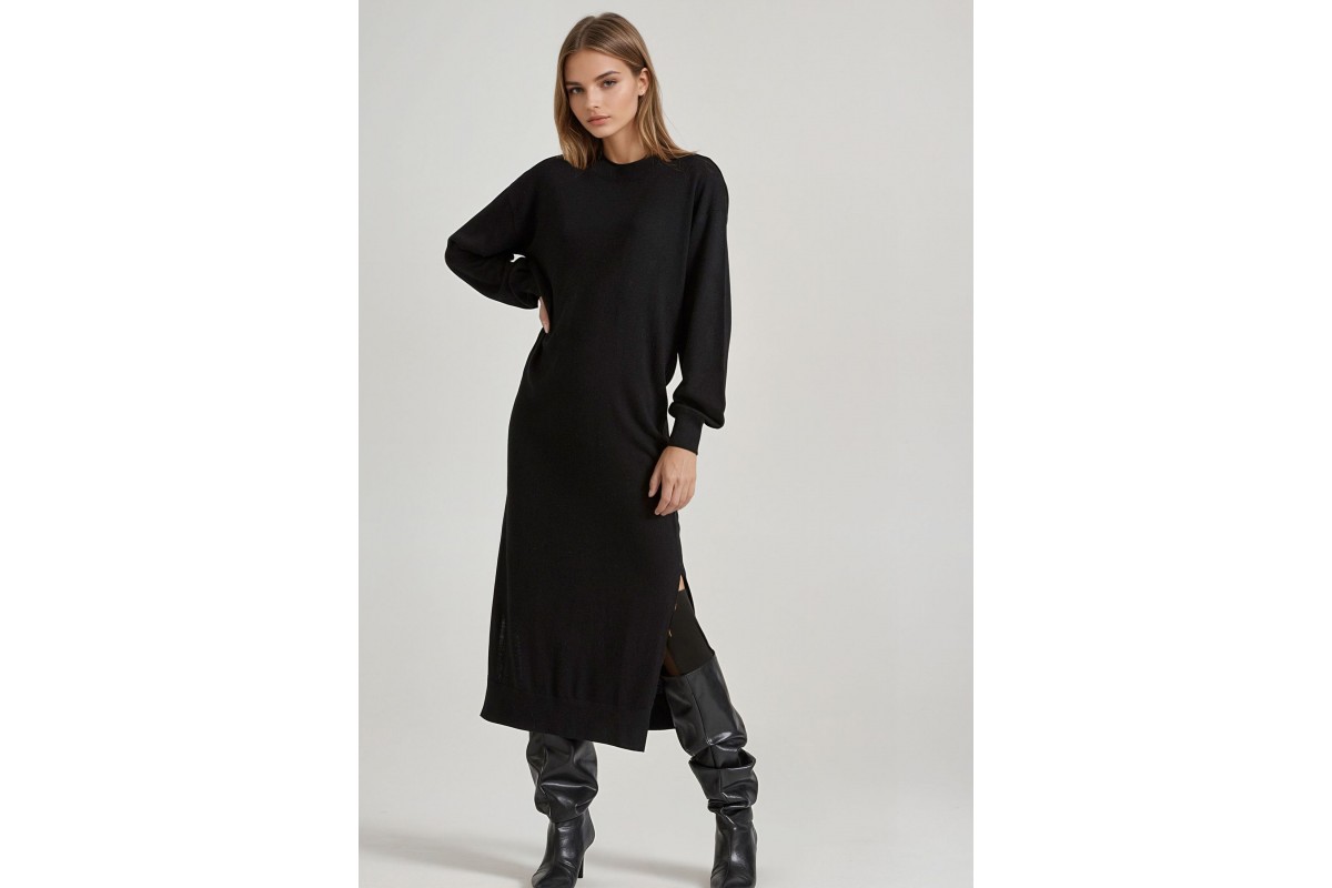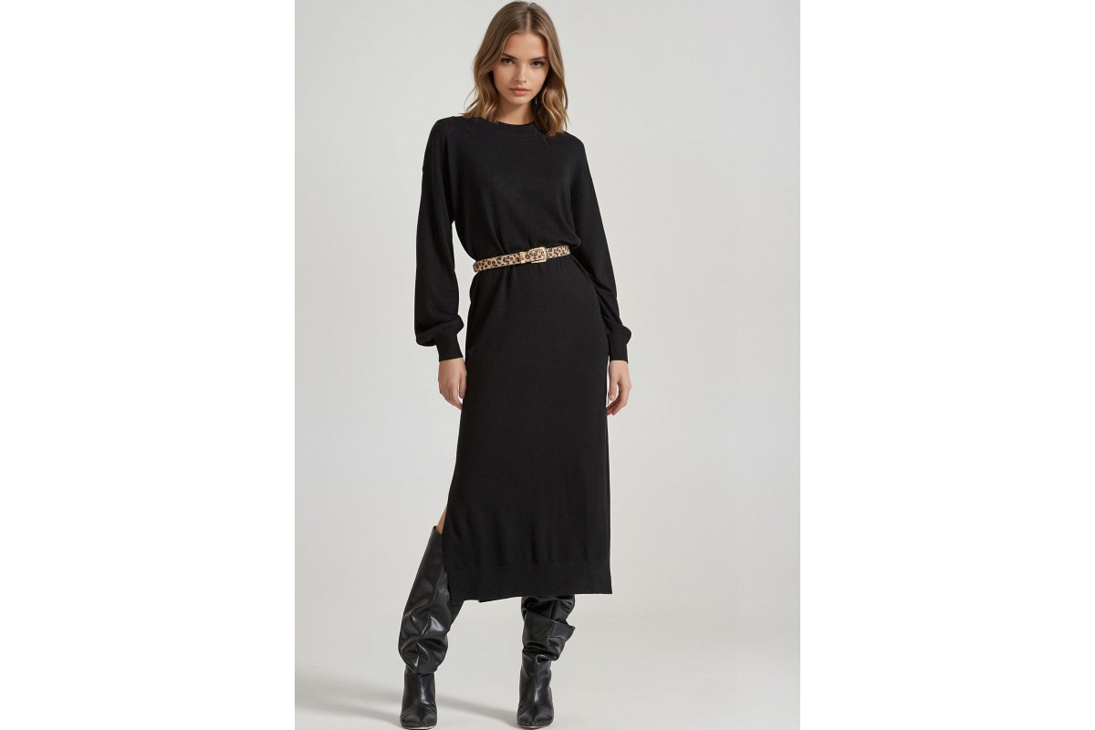 Κάνε την διαφορά τις κρύες μέρες του χειμώνα με αυτό το κομψό και πολυτελές πλεκτό φόρεμα της Funky Buddha σε μαύρο χρώμα.