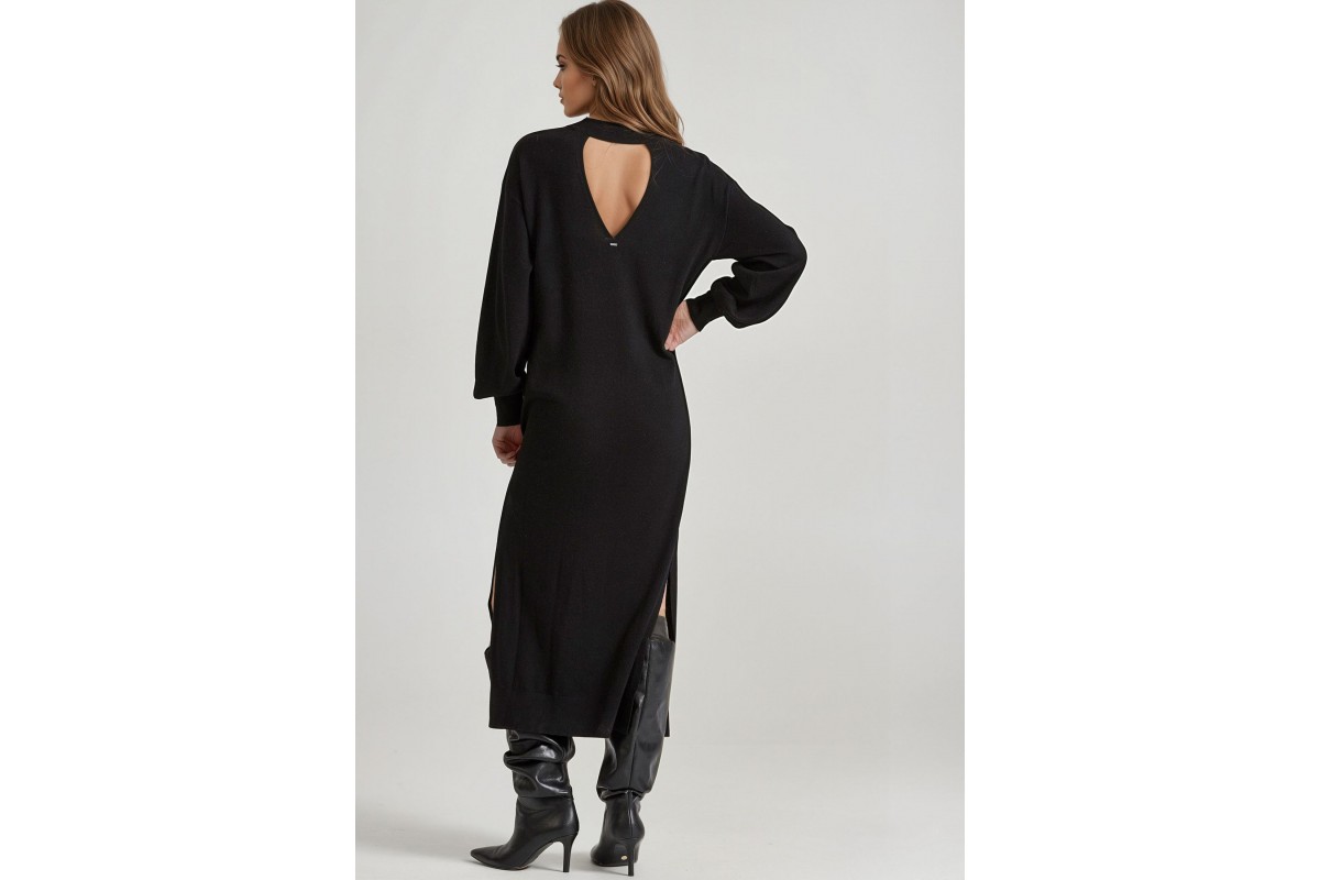 Funky Buddha Γυναικείο Maxi Πλεκτό Φόρεμα Μαύρο