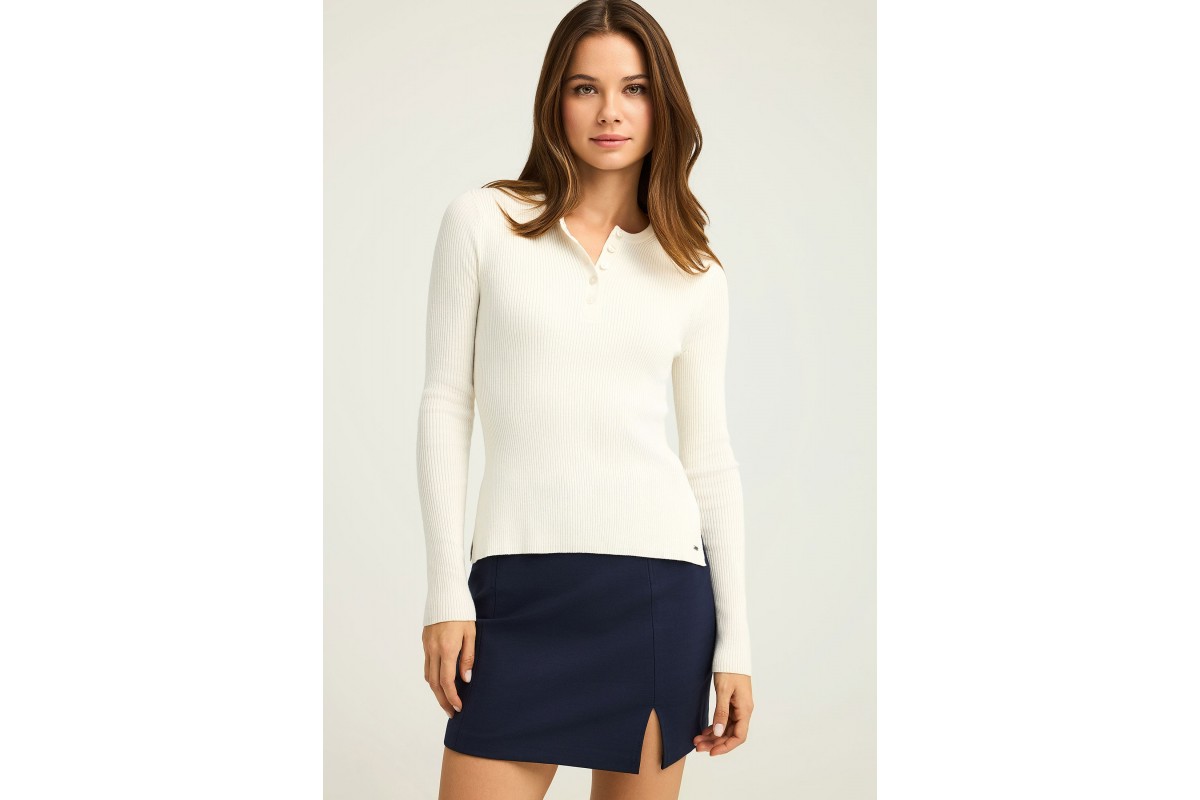 Funky Buddha Rib Knit With Henley Μπλούζα Πλεκτή Γυναικεία (FBL012-127-09-OFF-WHITE)