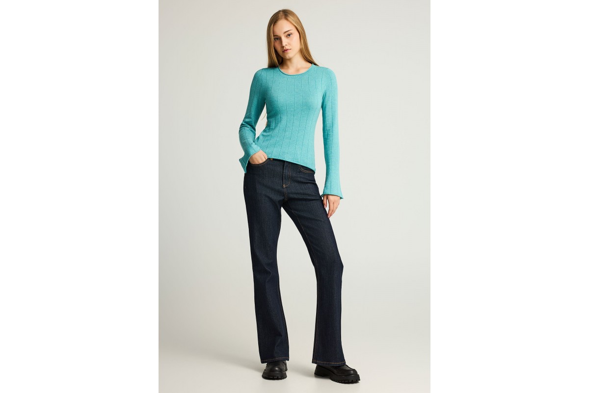 NEW IN! Funky Buddha Γυναικείο Πλεκτό Μακρυμάνικο Μπλουζάκι Τυρκουάζ