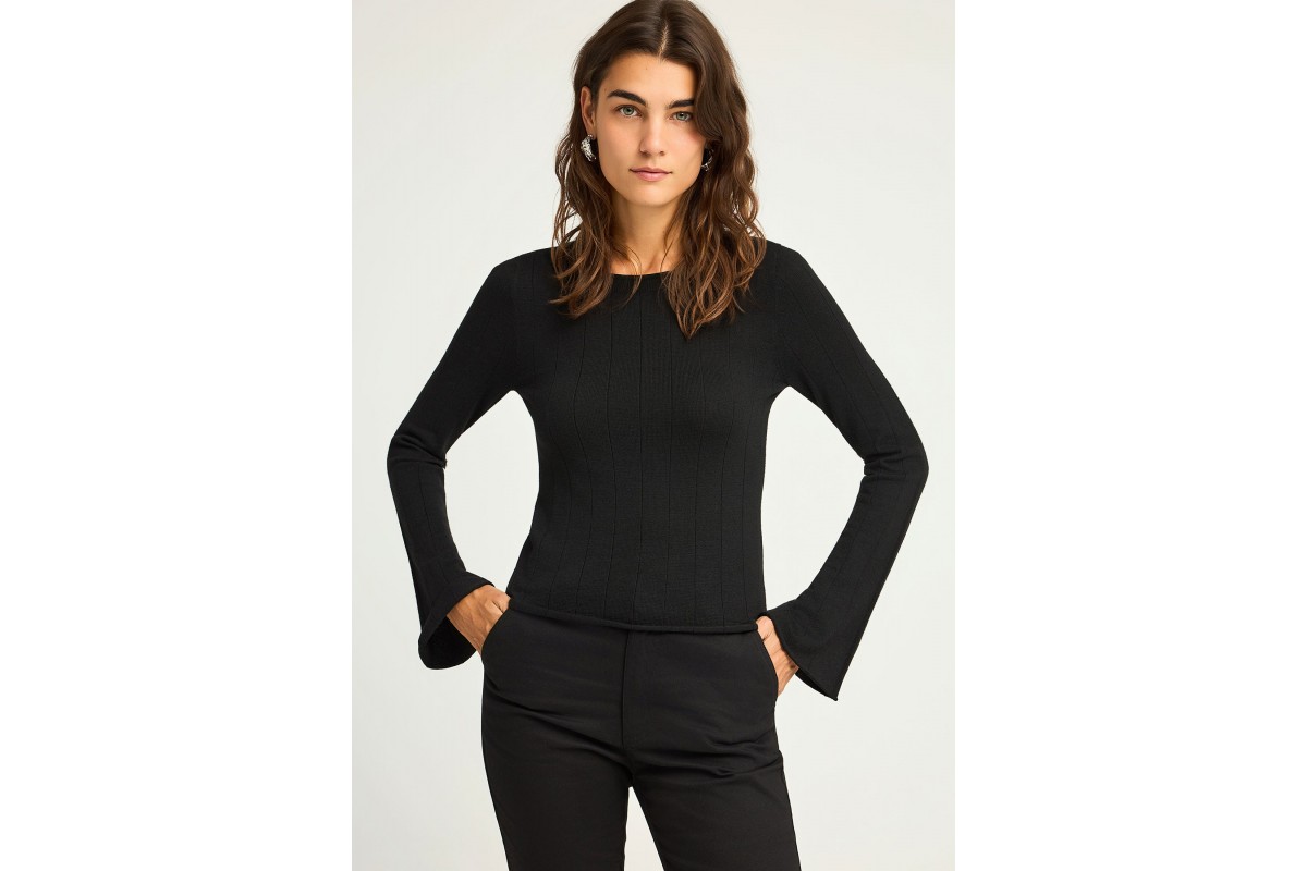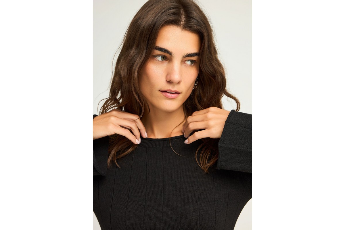 Η κάθετη rib πλέξη τονίζει τη σιλουέτα σου με κομψό τρόπο, ενώ η εφαρμογή του αγκαλιάζει απαλά το σώμα, προσφέροντας εκλεπτυσμένη γραμμή χωρίς να περιορίζει την κίνηση.