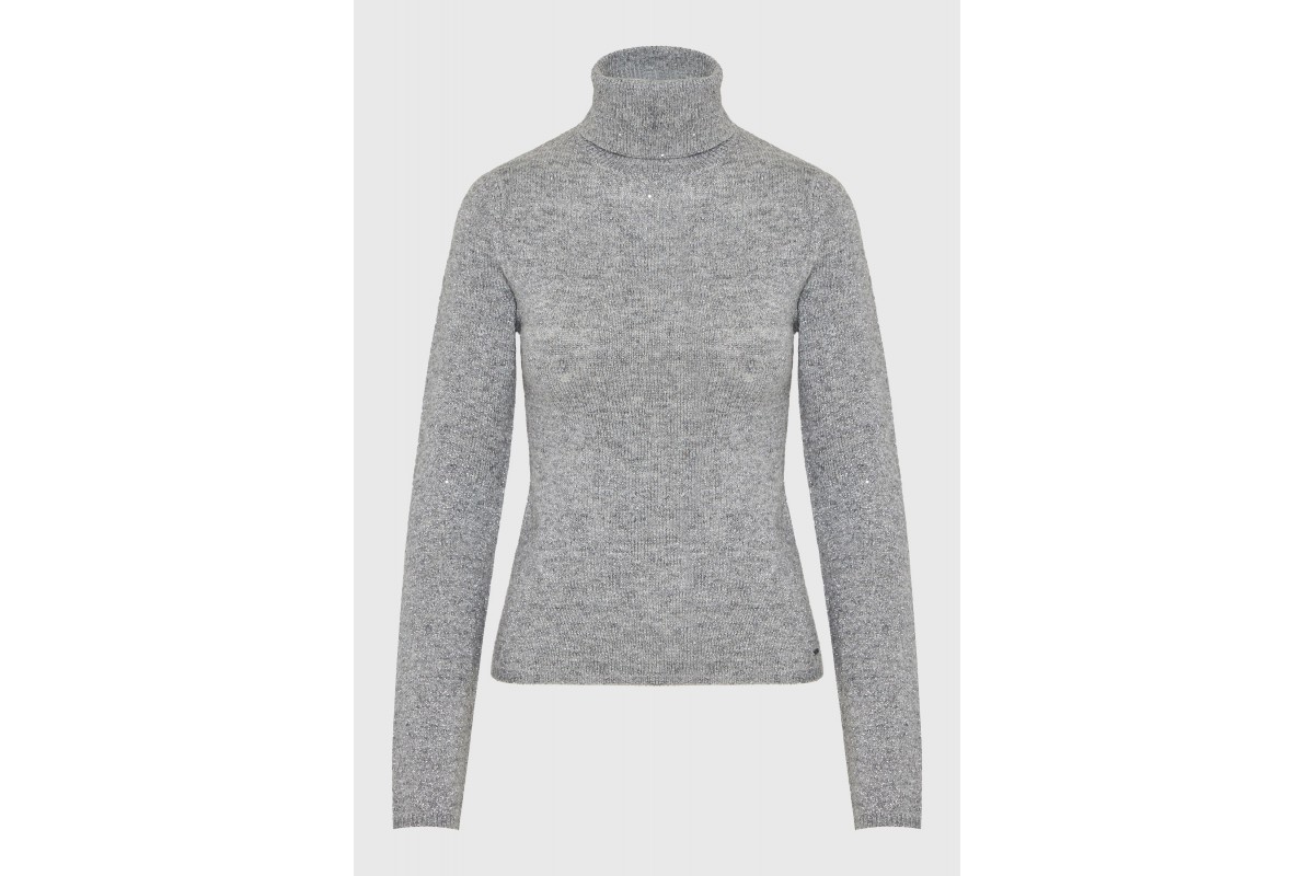 Funky Buddha Sequins Μπλούζα Με Ψηλό Λαιμό Γυναικεία (FBL012-112-09-GREY)