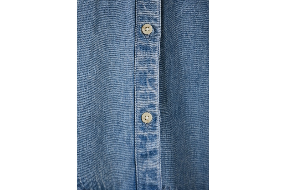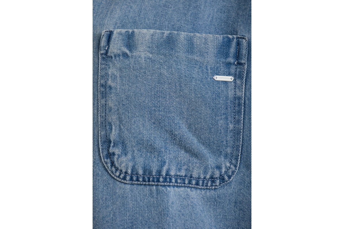 Οι τσέπες στο στήθος προσθέτουν πρακτικότητα και στυλ, ενώ το denim-inspired μονόχρωμο μπλε design το κάνει εύκολο να συνδυαστεί με κάθε outfit.