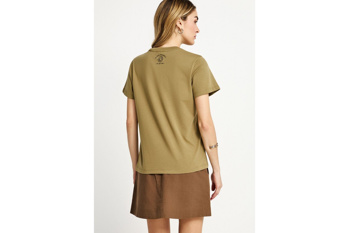 NEW IN! Funky Buddha Graphic Print Γυναικείο Κοντομάνικο T-Shirt Λαδί