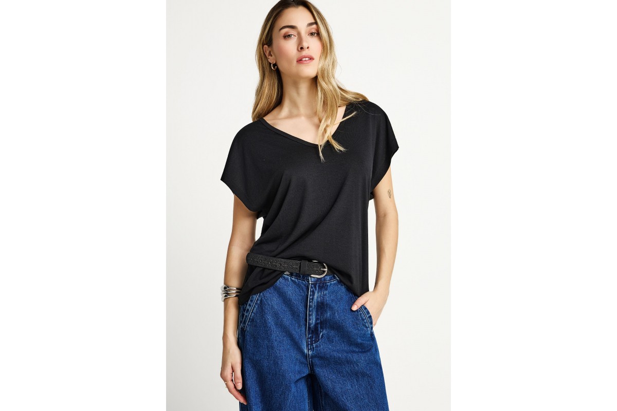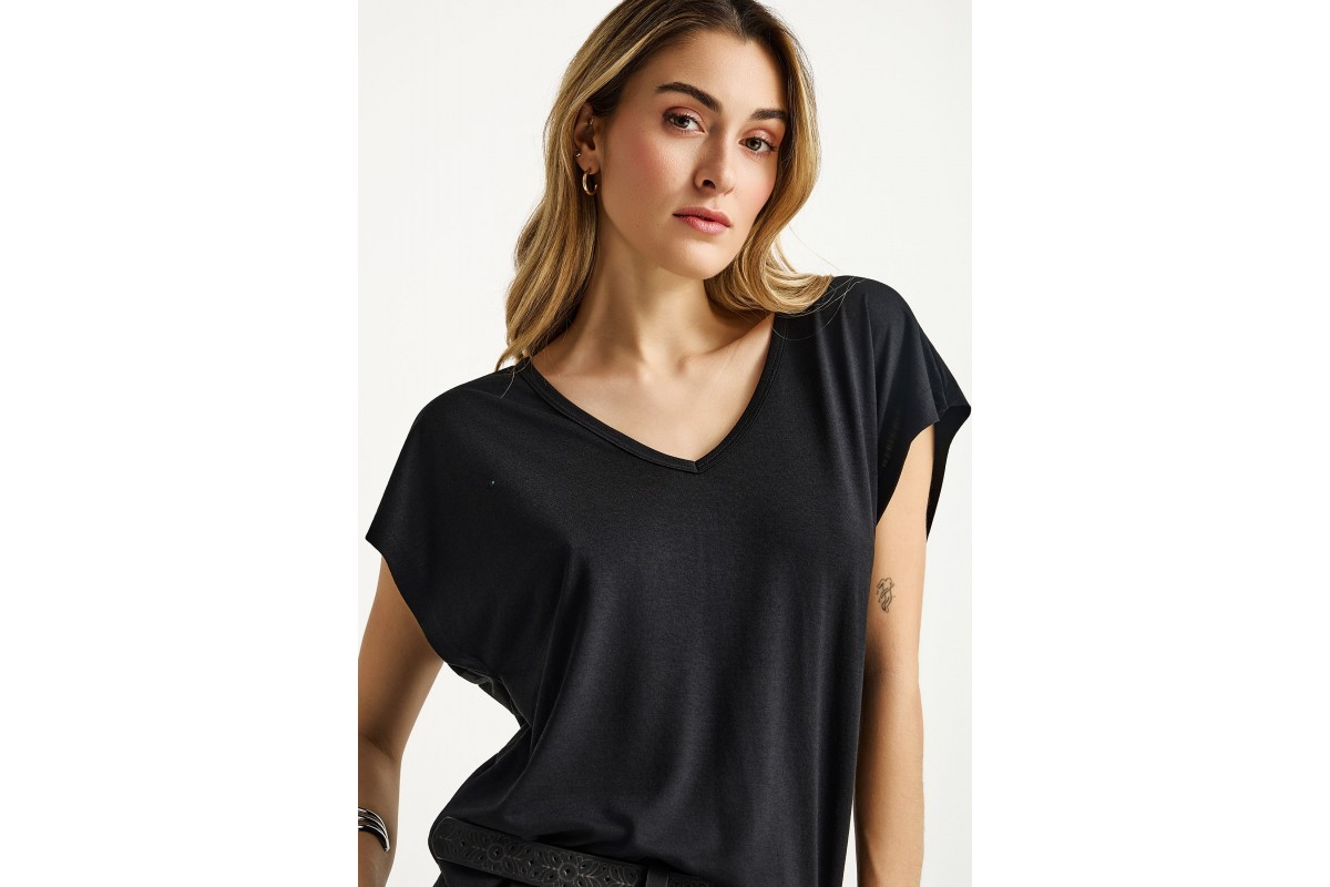 Αναβάθμισε το καθημερινό σου στυλ με τη Funky Buddha γυναικεία κοντομάνικη μπλούζα σε μαύρο χρώμα, ένα basic κομμάτι από τη σειρά Basics Collection που συνδυάζει άνεση και διαχρονική κομψότητα.