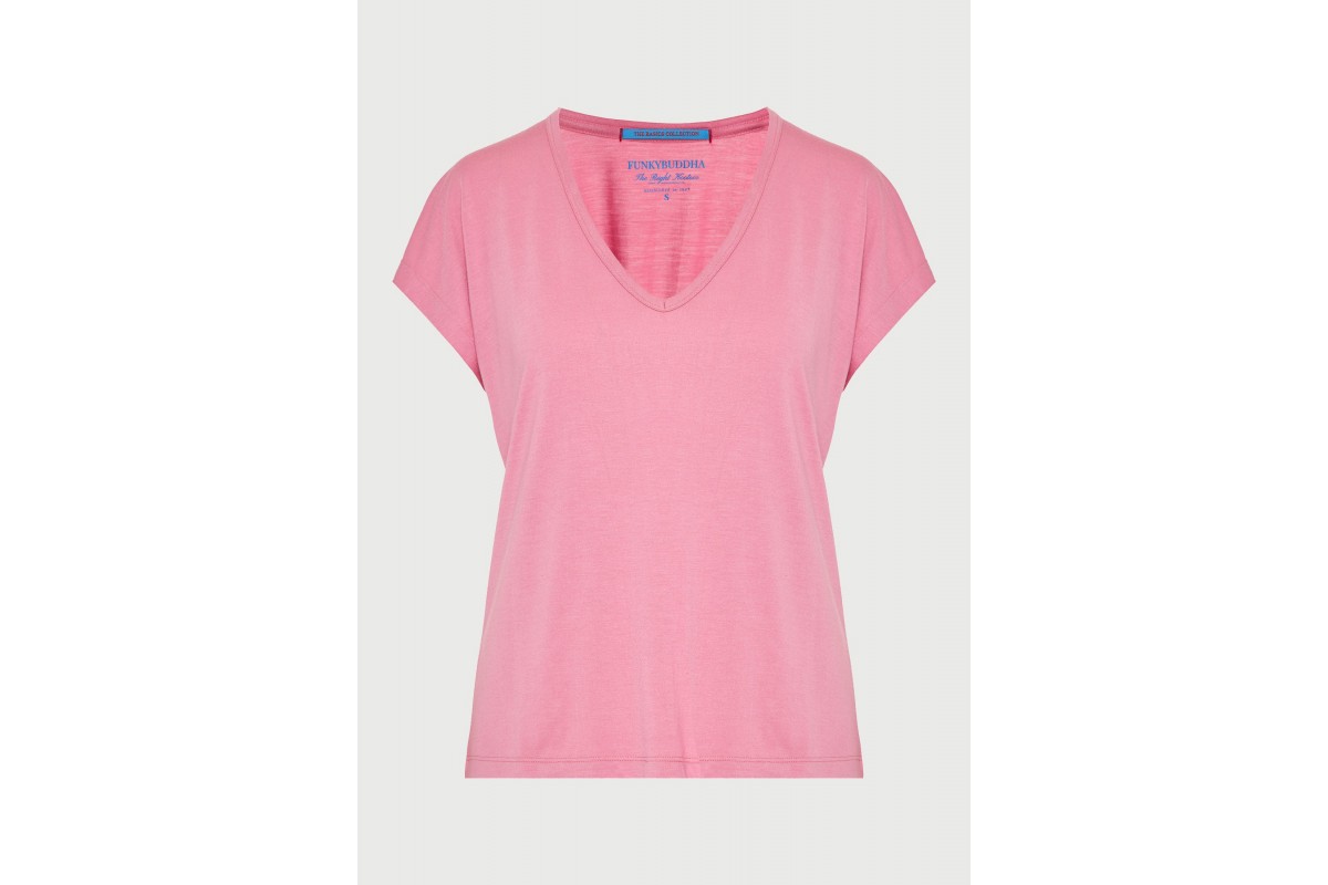 NEW IN! Funky Buddha The Basics Collection V-Neck T-Shirt Γυναικείο (FBL013-111-04-CASHMERE-ROSE)