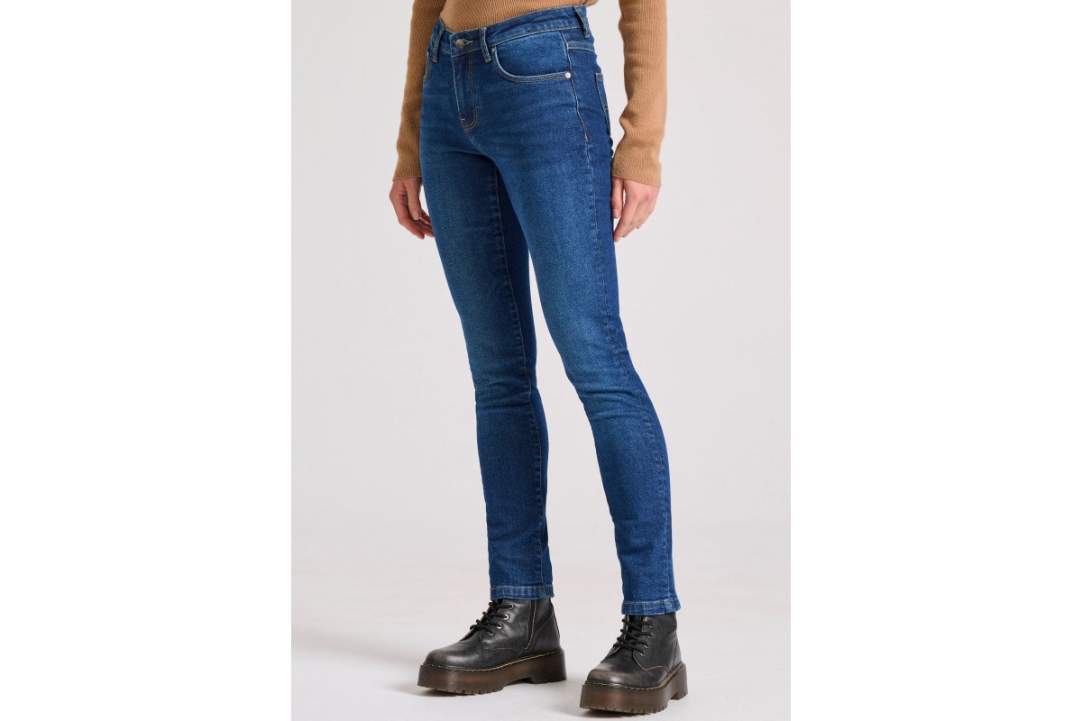 Με τη skinny fit γραμμή, αυτό το γυναικείο τζιν, αγκαλιάζει τις καμπύλες, δημιουργώντας μια κομψή και κολλητή σιλουέτα που αναδεικνύει τη μέση και τα πόδια.