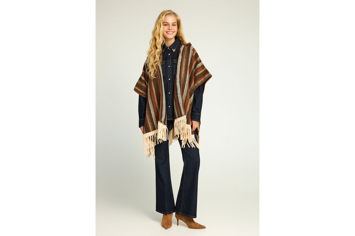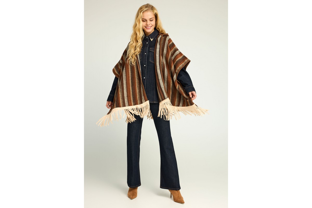 Αναβάθμισε το φθινοπωρινό και χειμερινό σου στυλ με τη Funky Buddha γυναικεία κάπα σε καφέ, μπεζ και μαύρο χρώμα, ένα statement κομμάτι που συνδυάζει boho χαρακτήρα και καθημερινή άνεση.