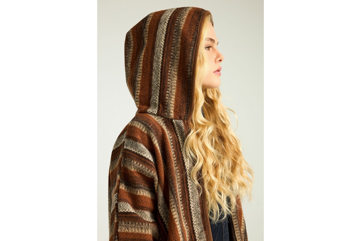 Το εντυπωσιακό της σχέδιο σε γήινες αποχρώσεις χαρίζει ζεστασιά και αισθητική ισορροπία, ενώ η κουκούλα προσθέτει πρακτικότητα και επιπλέον cozy διάθεση.