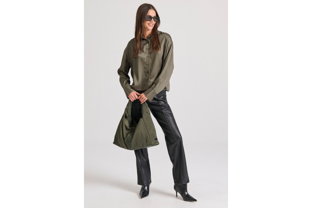 Μη Διαθέσιμο Funky Buddha Γυναικείο Μακρυμάνικο Πουκάμισο Χακί
