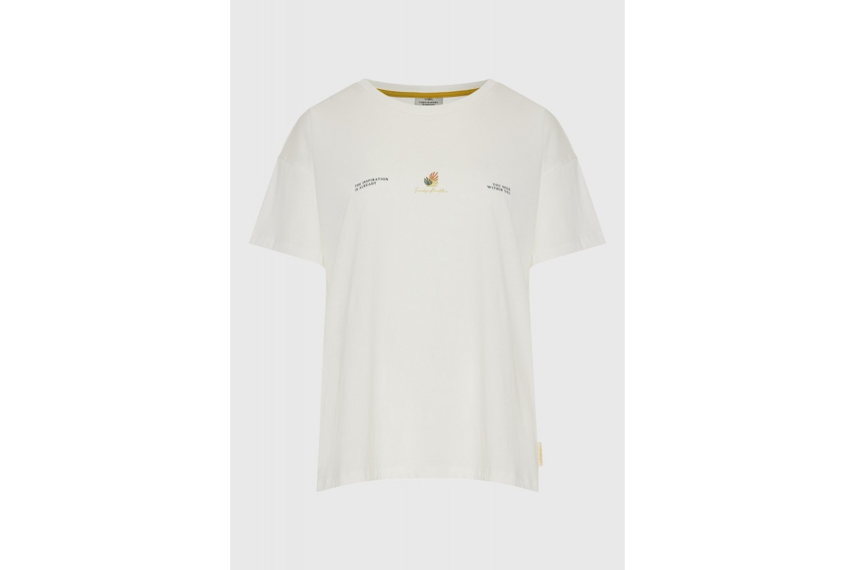 Funky Buddha Loose Fit With Artwork Print T-Shirt Γυναικείο (FBL013-125-04-OFF-WHITE)