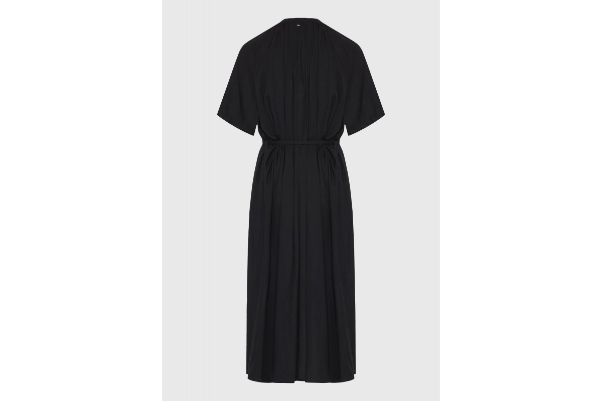 Η relaxed fit γραμμή χαρίζει ελευθερία κινήσεων και άνετη εφαρμογή, ενώ η αποσπώμενη ζώνη σου δίνει τη δυνατότητα να προσαρμόζεις το φόρεμα στη σιλουέτα σου, αναδεικνύοντας τη μέση με κομψό τρόπο.