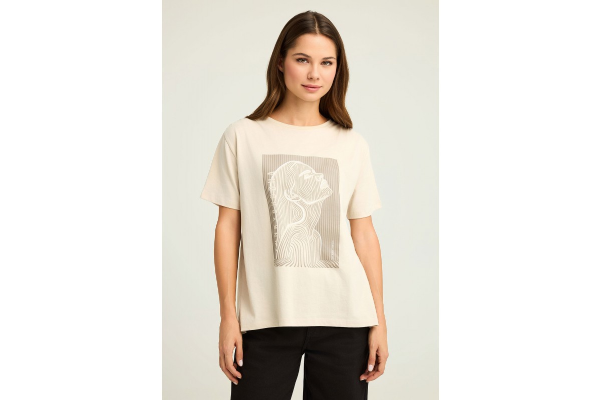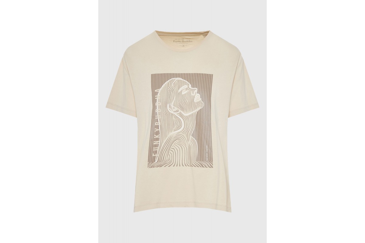 Αναβάθμισε το καθημερινό σου στυλ με το Funky Buddha γυναικείο κοντομάνικο T-Shirt σε μπεζ χρώμα, ένα κομμάτι που συνδυάζει μινιμαλισμό, άνεση και καλλιτεχνική αισθητική.