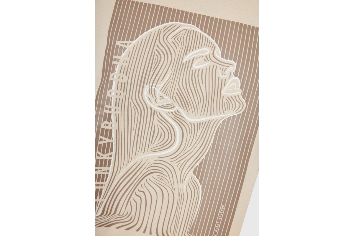 Το εντυπωσιακό γραφικό τύπωμα στο μπροστινό μέρος, με αφηρημένες γραμμικές λεπτομέρειες που σχηματίζουν πρόσωπο, δίνει μια μοντέρνα και elegant πινελιά σε κάθε σου εμφάνιση.