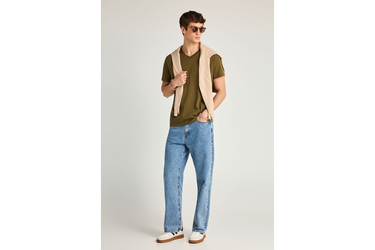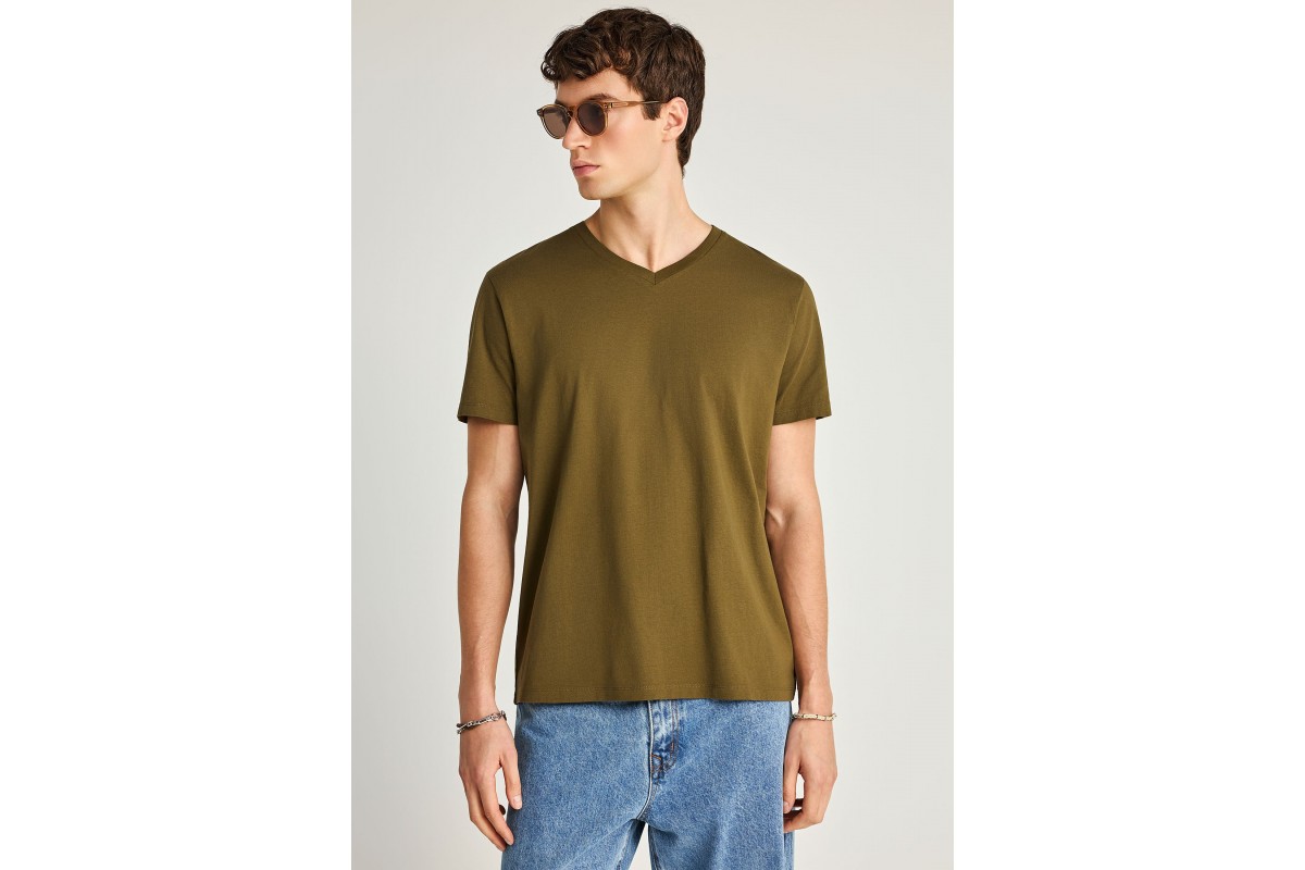 Funky Buddha T-Shirt Με V Λαιμόκοψη - The Basics Collection (FBM013-002-04-DUSTY-OLIVE)