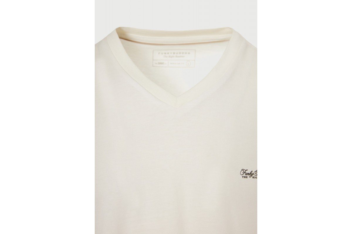 Funky Buddha T-Shirt Με V Λαιμόκοψη - The Basics Collection (FBM013-002-04-OFF-WHITE)