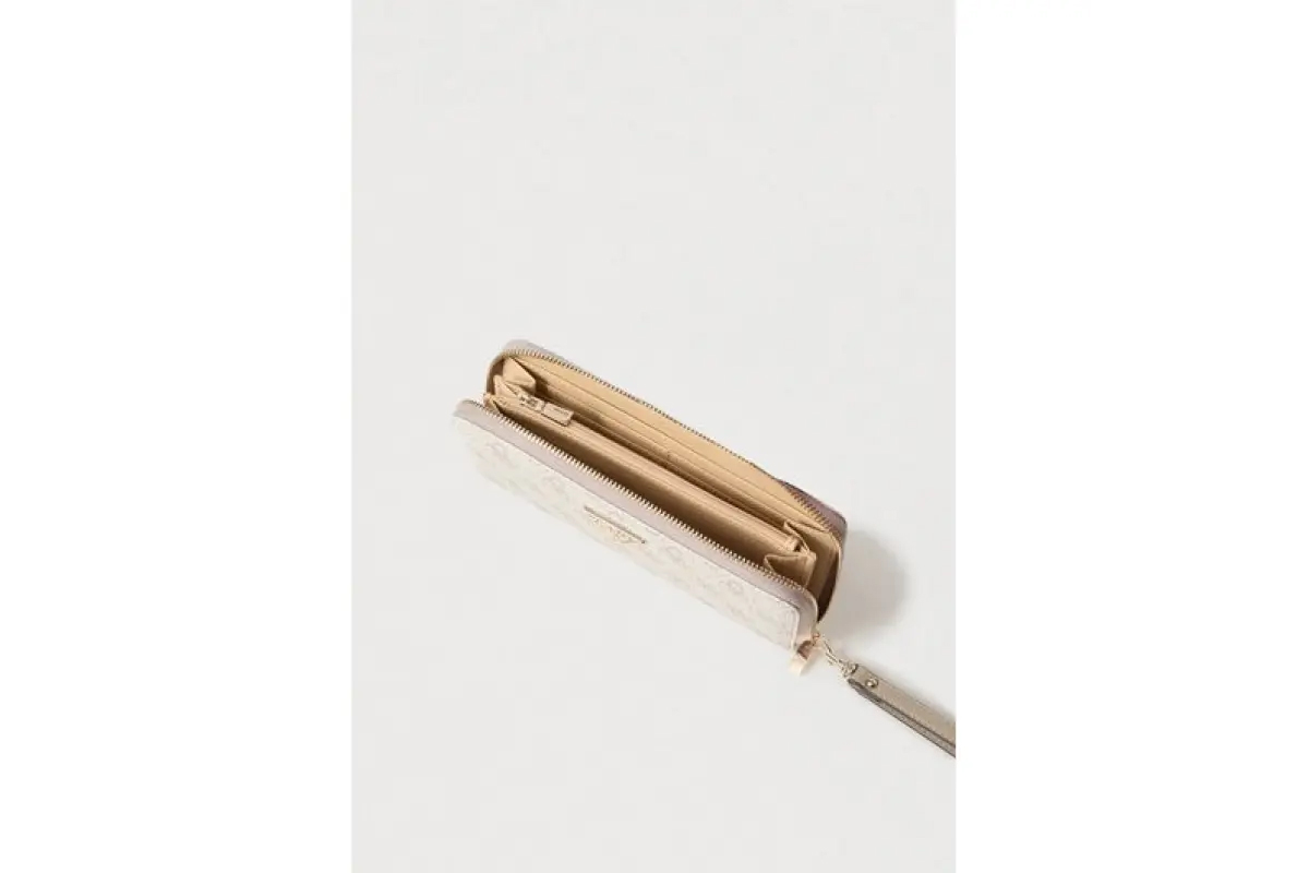 NEW IN! Guess Laurel 4G Logo Γυναικείο Πορτοφόλι Πουρό, Μπεζ, Χρυσό
