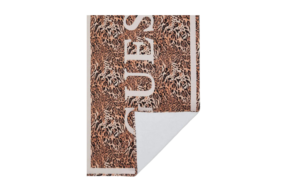 Η πετσέτα θαλάσσης Guess σε μπεζ και καφέ χρώμα αποτελεί το ιδανικό αξεσουάρ για τις εξορμήσεις σου στην παραλία.