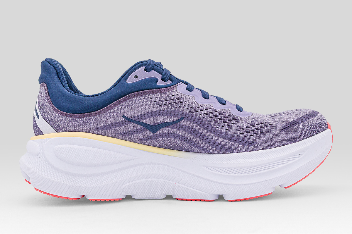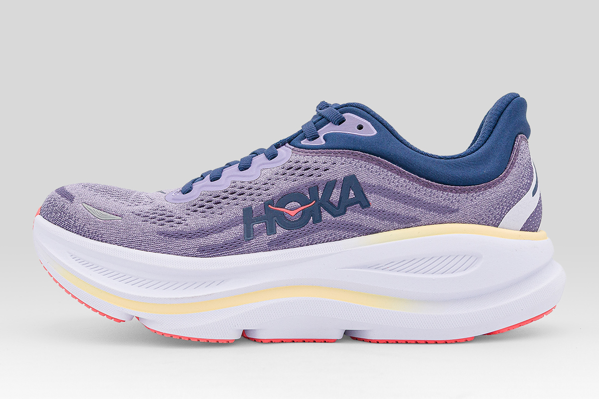 Βάλε χρώμα και απόδοση σε κάθε σου διαδρομή με τα Hoka One One Bondi 9 αθλητικά παπούτσια για τρέξιμο σε μωβ, κίτρινο και λευκό χρώμα.